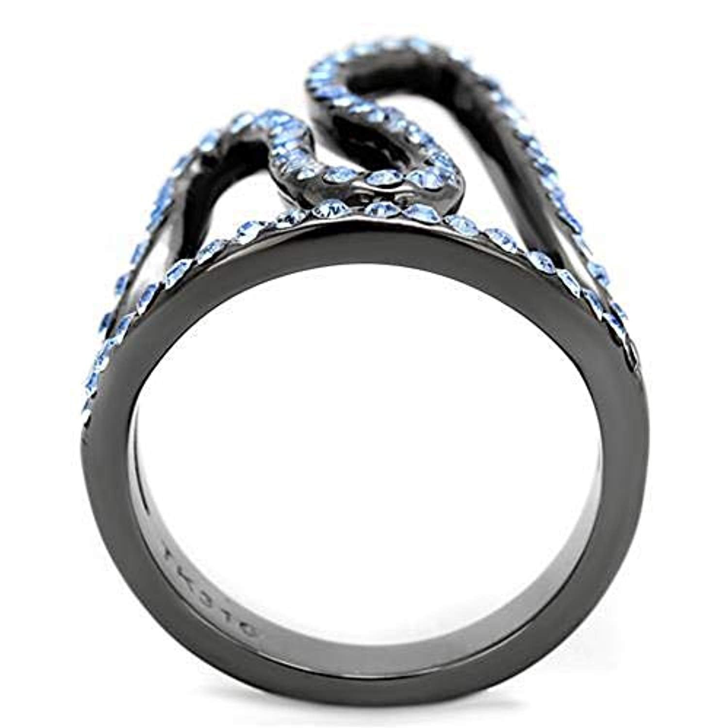 WildKlass Stainless Steel Ring IP Light Black (IP Gun) Women Top Grade Crystal Aquamarine