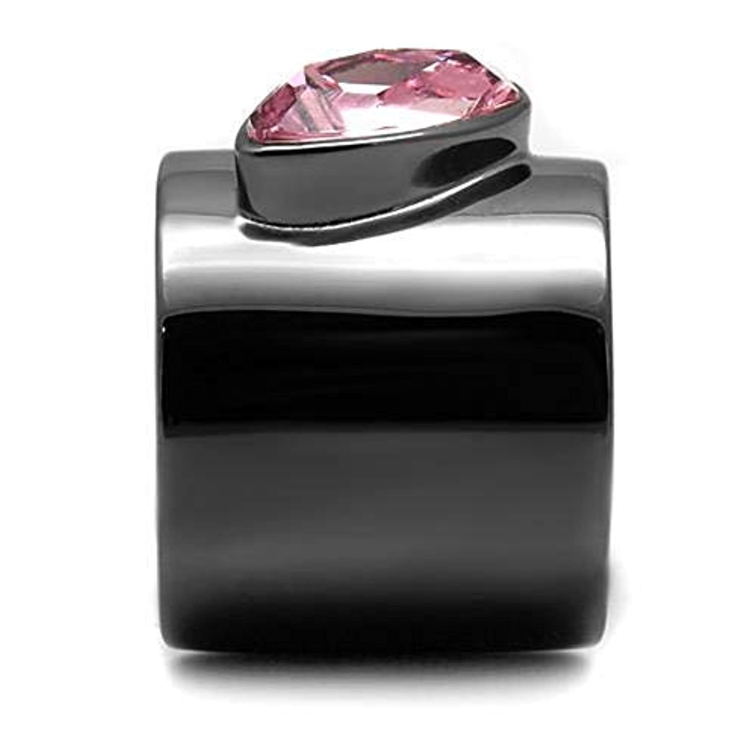 WildKlass Stainless Steel Ring IP Light Black (IP Gun) Women Top Grade Crystal Light Rose