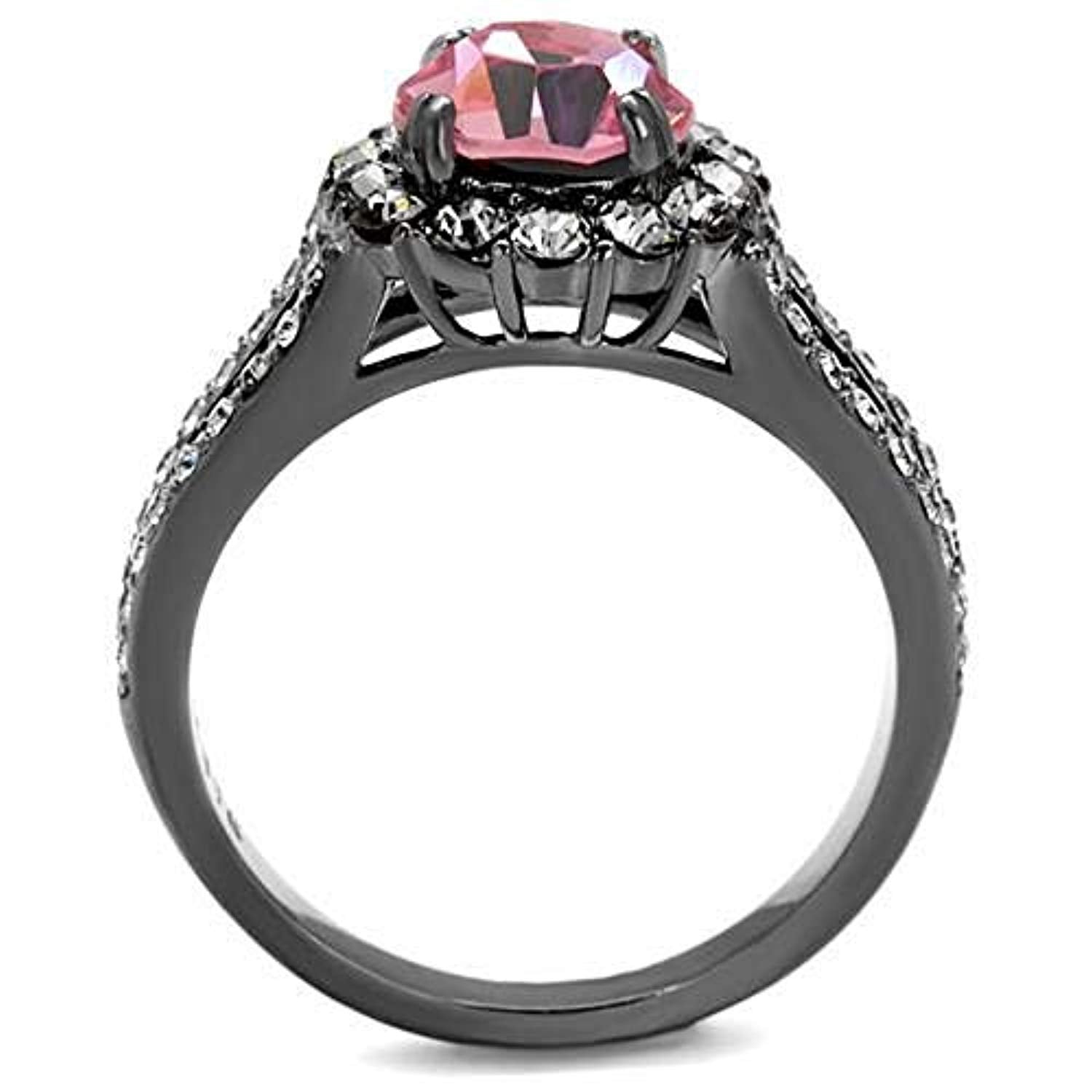 WildKlass Stainless Steel Ring IP Light Black (IP Gun) Women Top Grade Crystal Light Rose