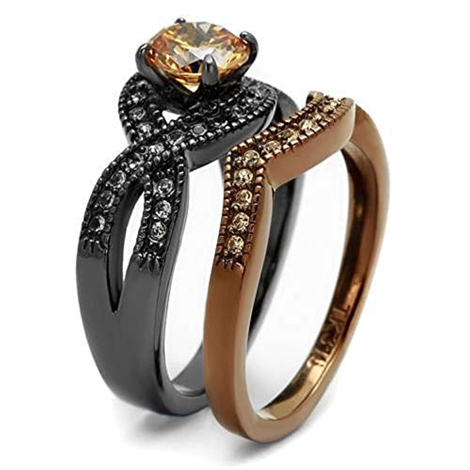WildKlass Stainless Steel Ring IP Light Black & IP Light Coffee Women AAA Grade CZ Champagne