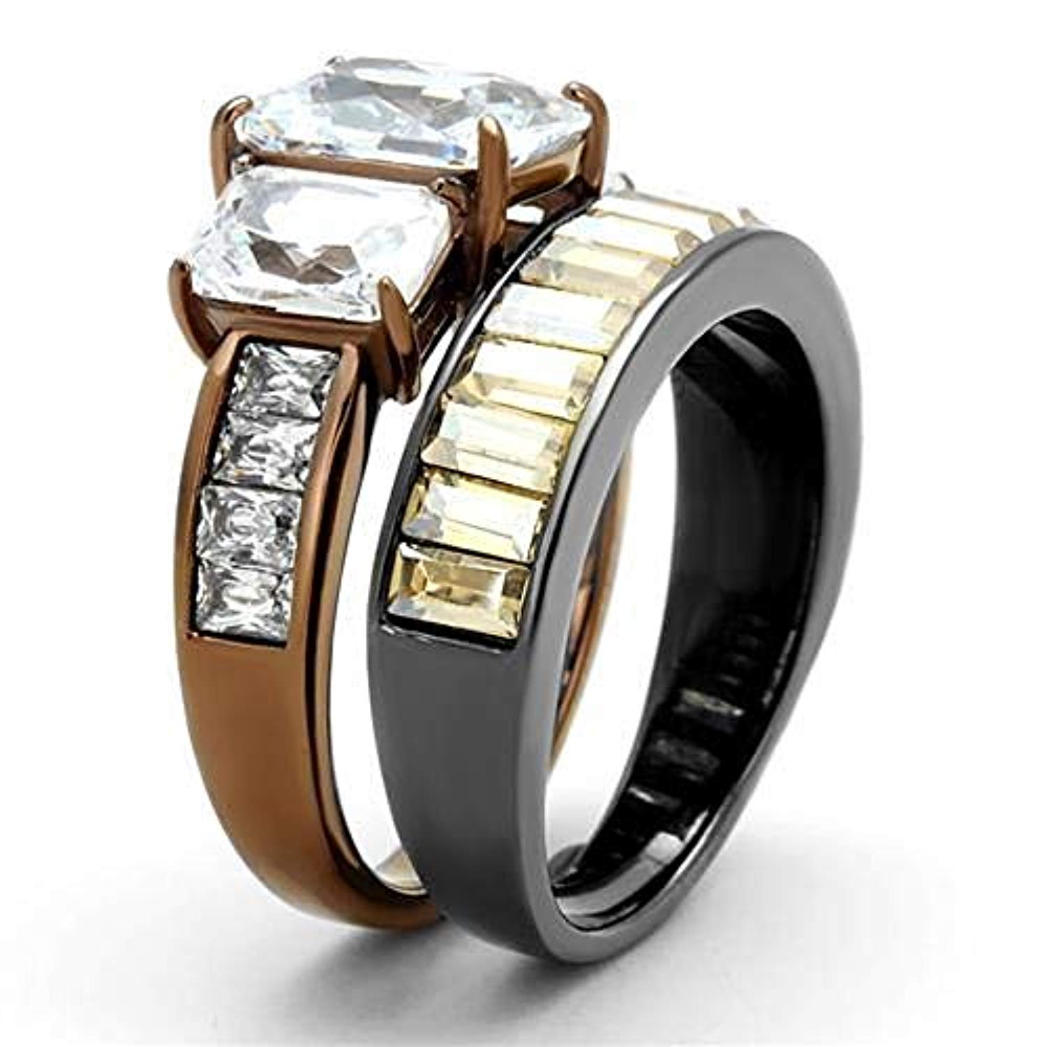 WildKlass Stainless Steel Ring IP Light Black & IP Light Coffee Women AAA Grade CZ Clear