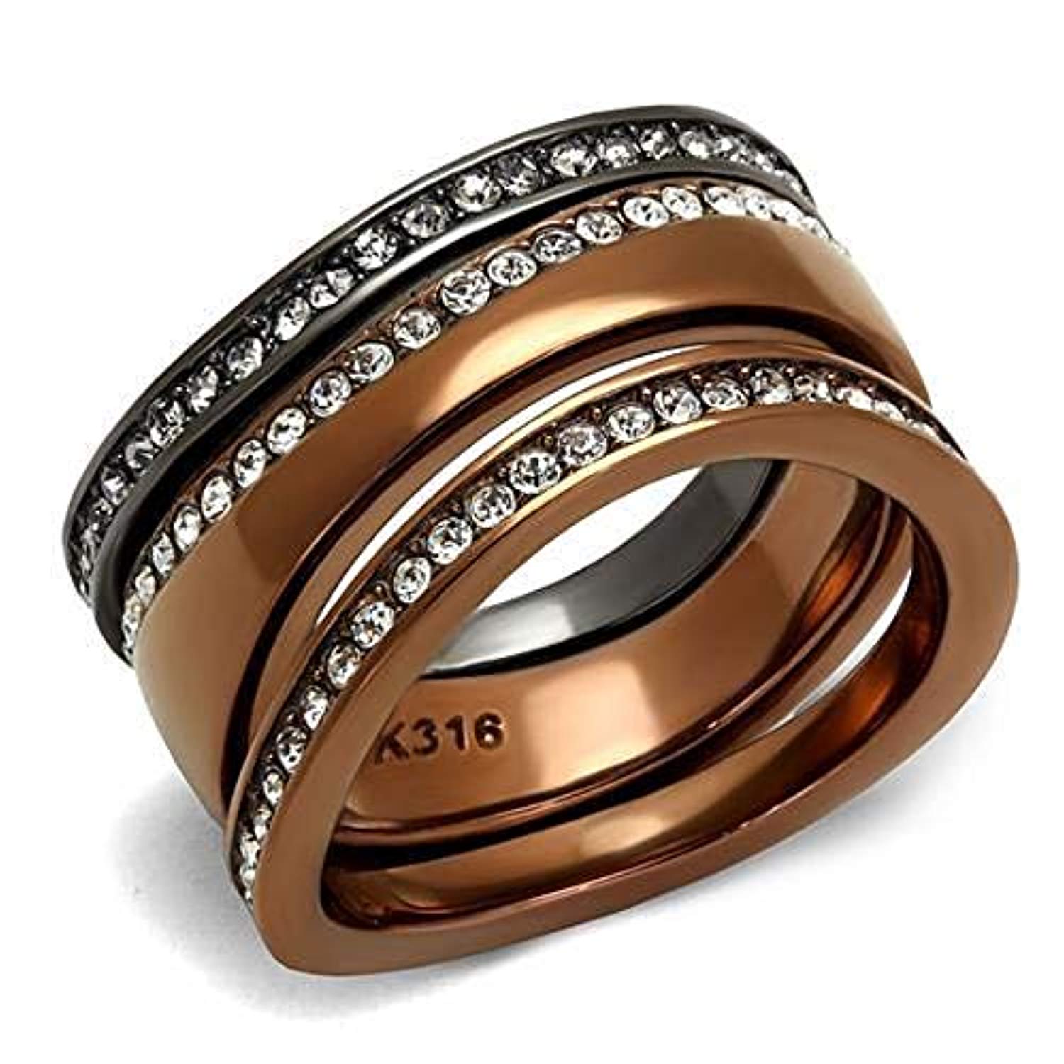 WildKlass Stainless Steel Ring IP Light Black & IP Light Coffee Women Top Grade Crystal Black Diamond