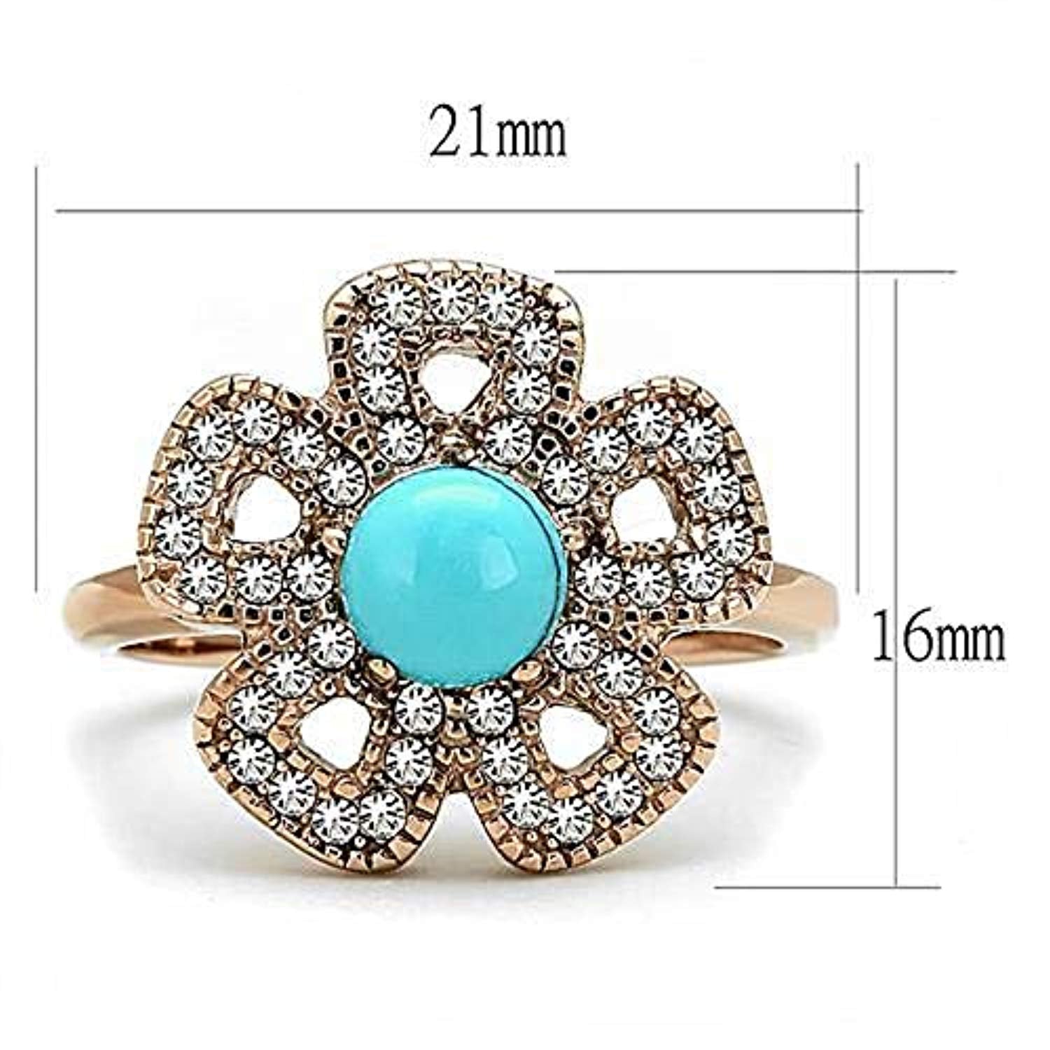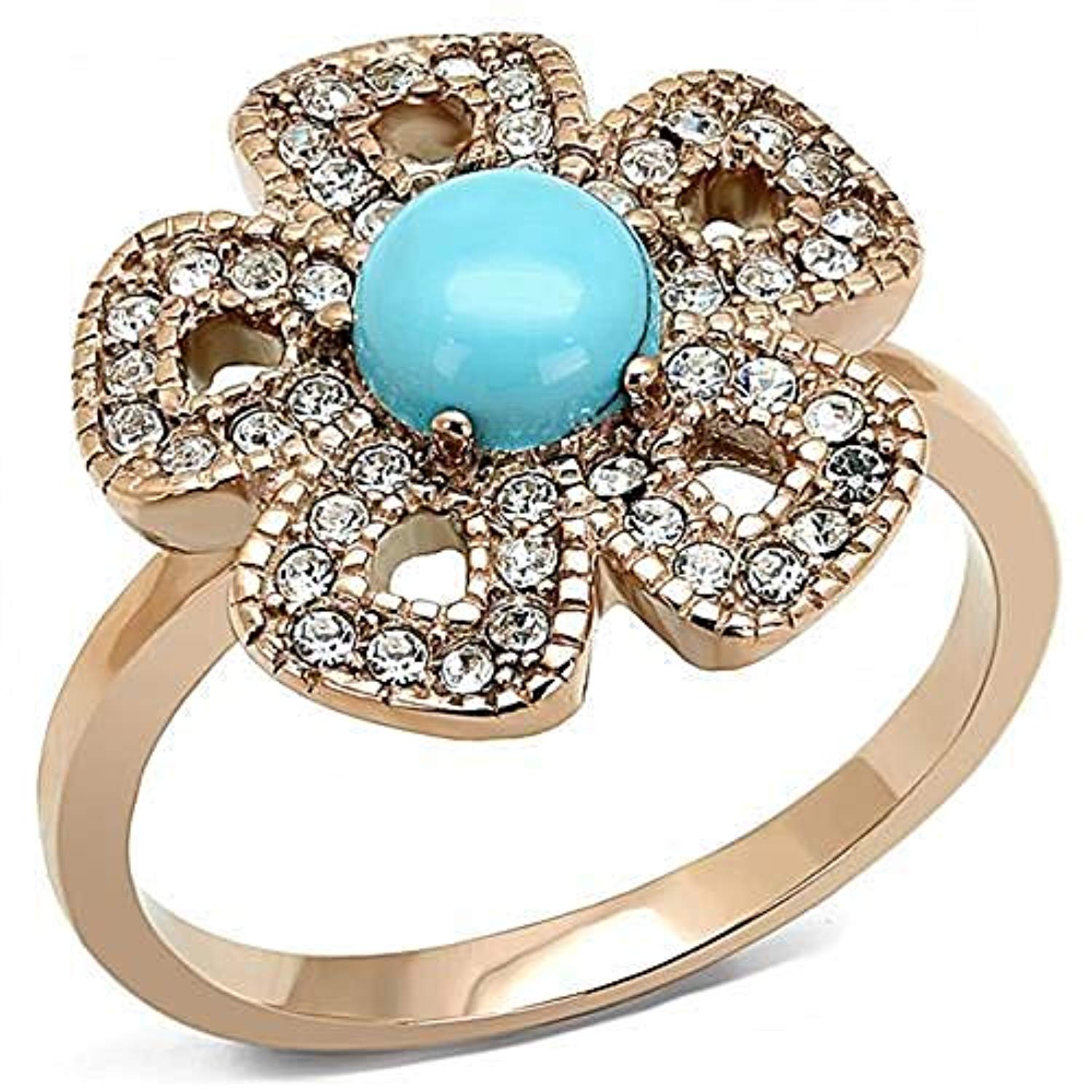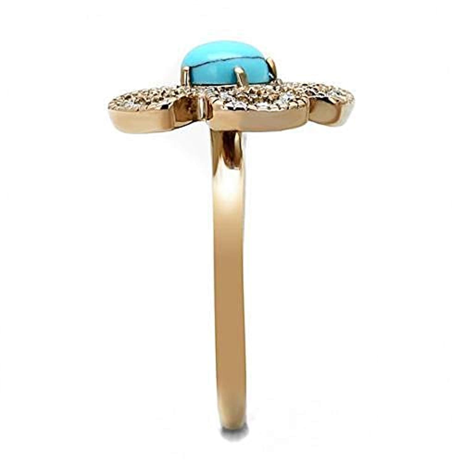 WildKlass Stainless Steel Ring IP Rose Gold Women Synthetic Sea Blue