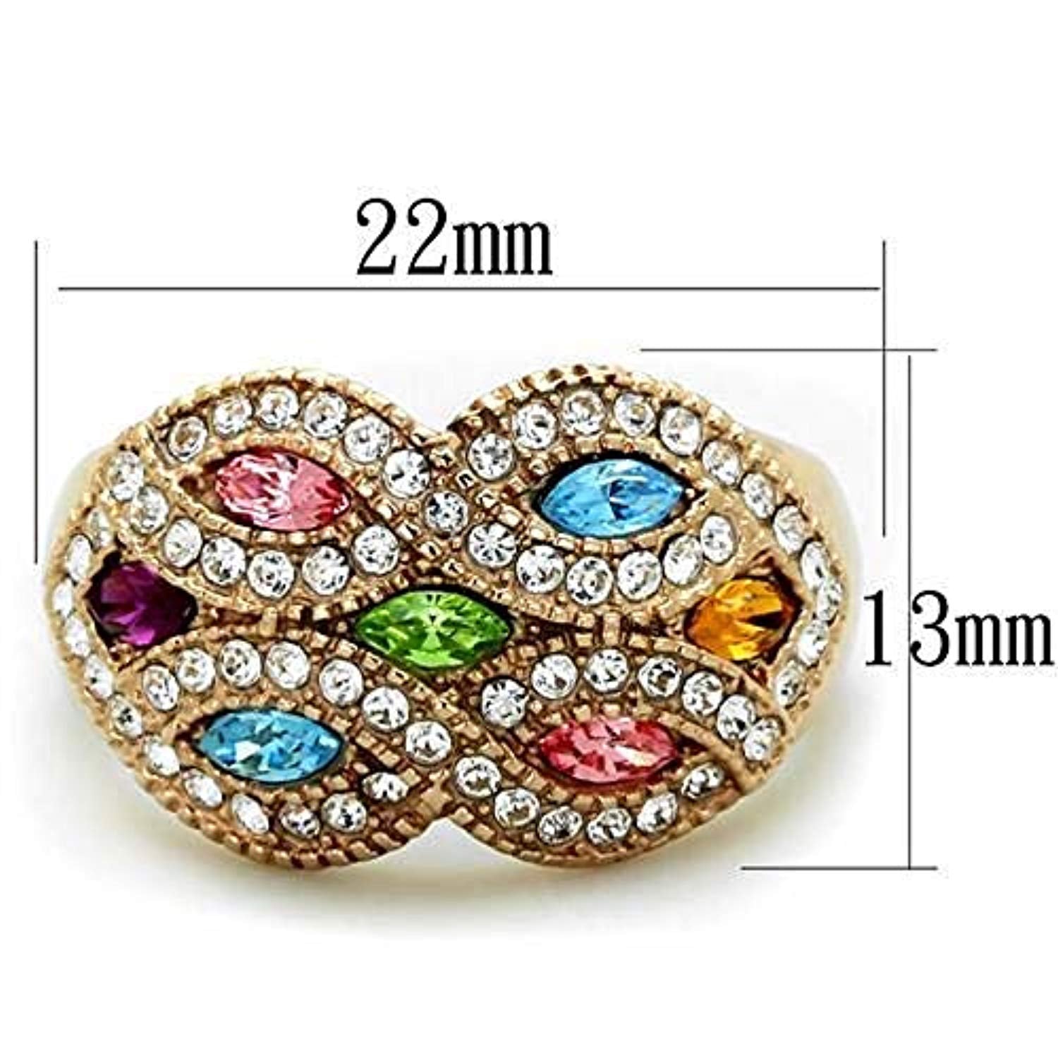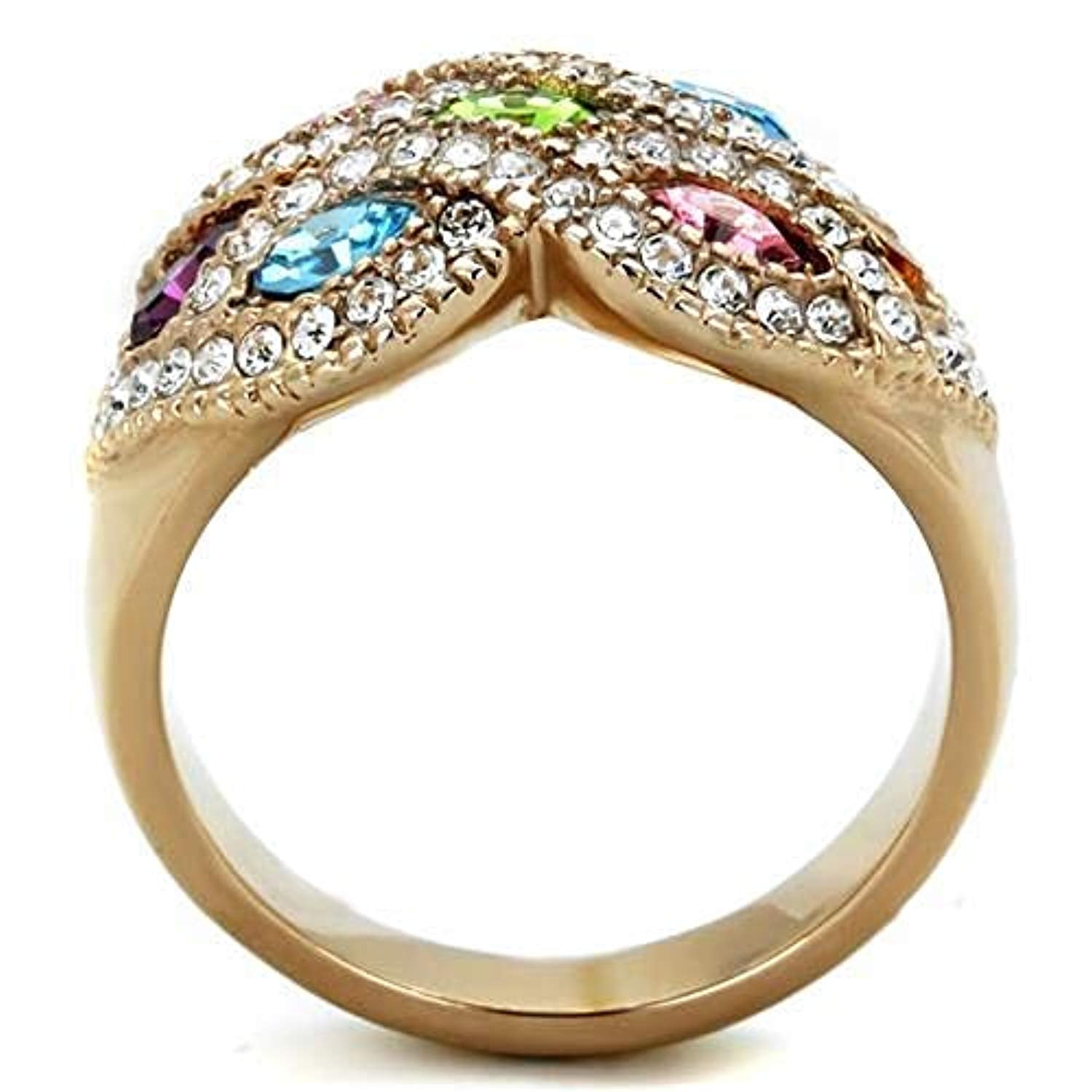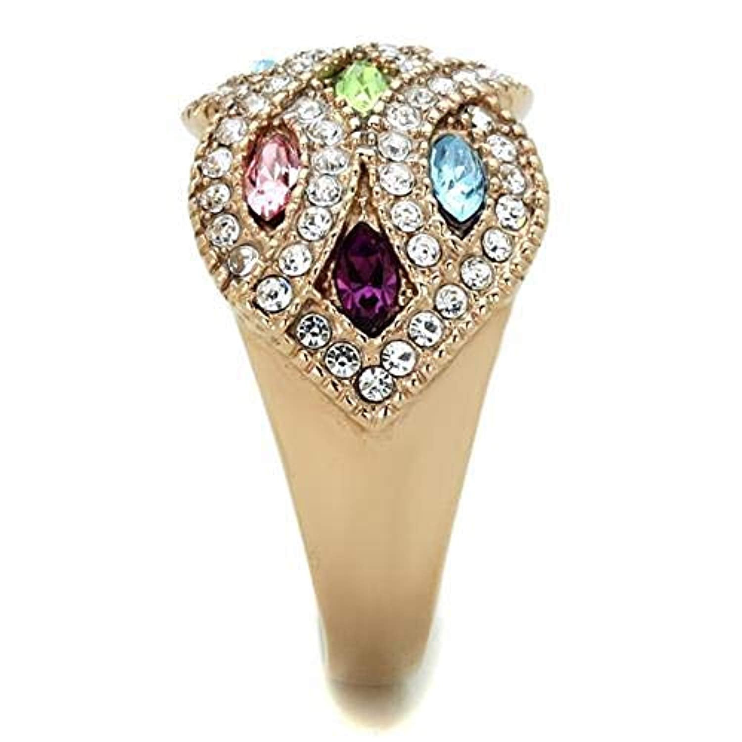 WildKlass Stainless Steel Ring IP Rose Gold Women Top Grade Crystal Multi Color