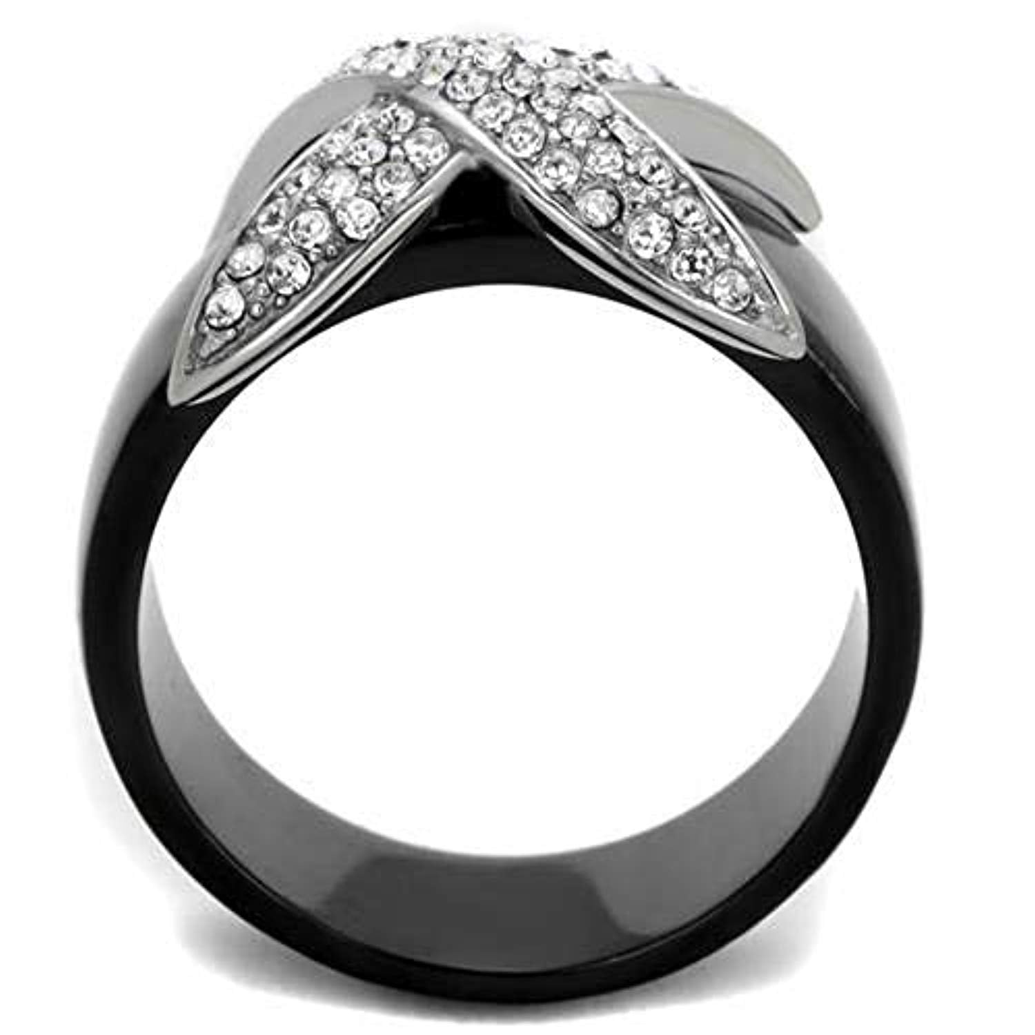 WildKlass Stainless Steel Ring Two-Tone IP Black Men Top Grade Crystal Clear