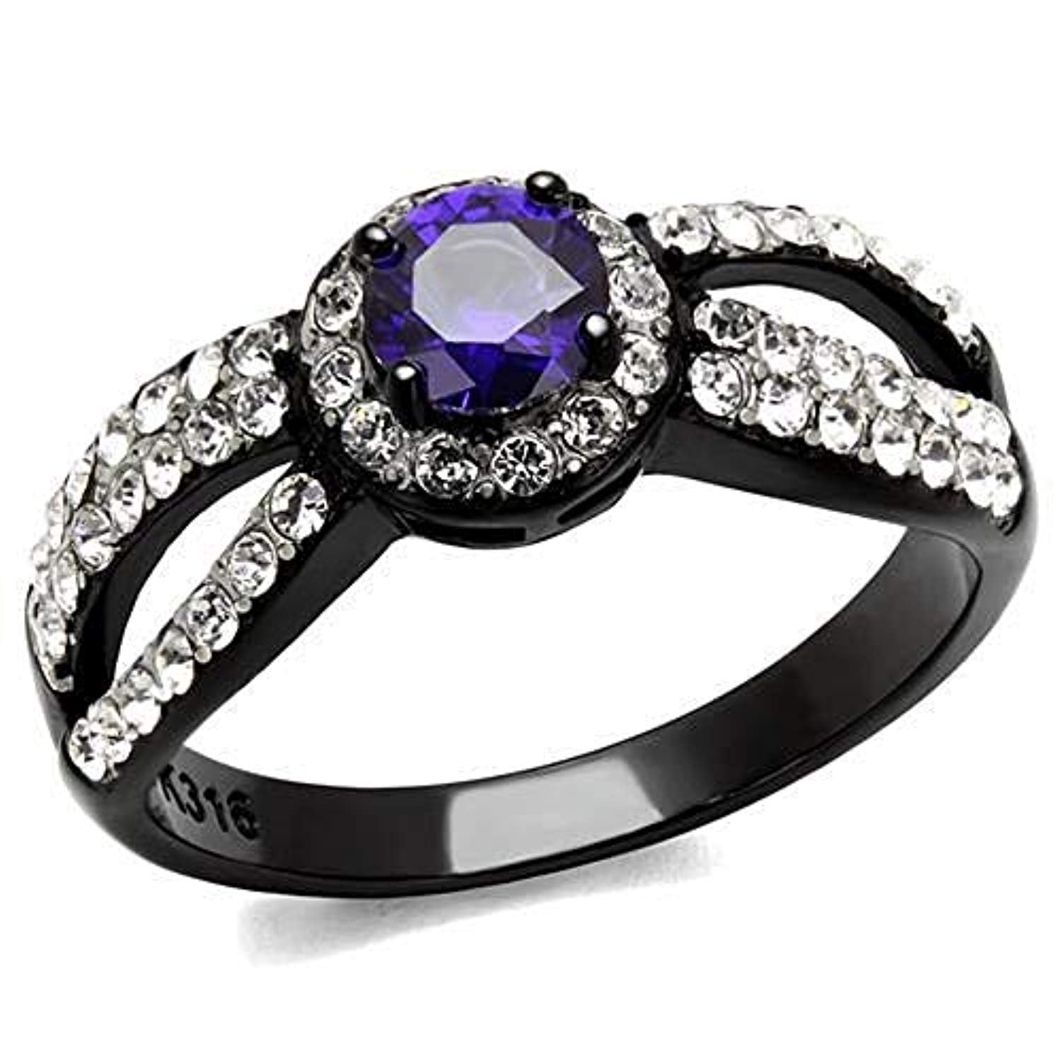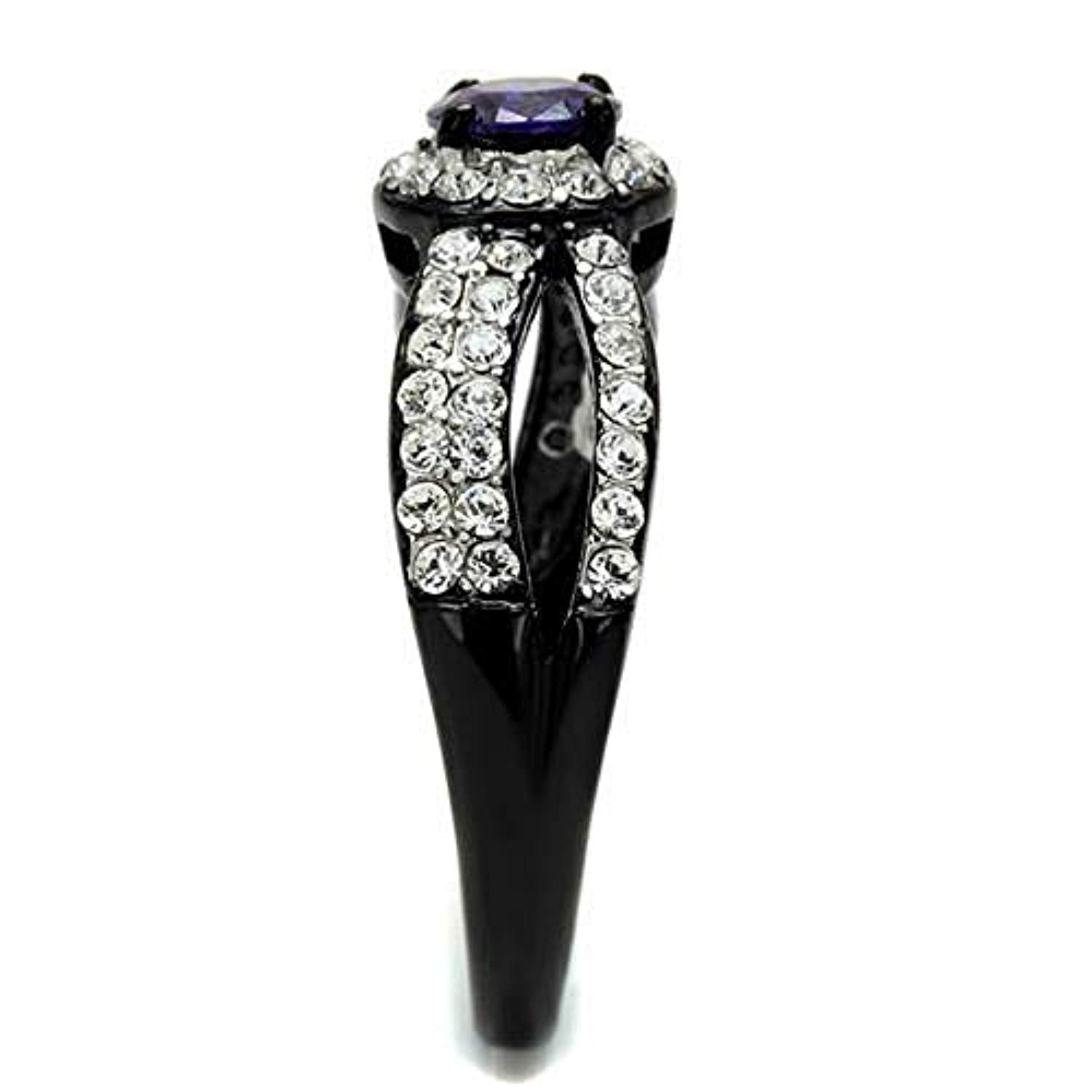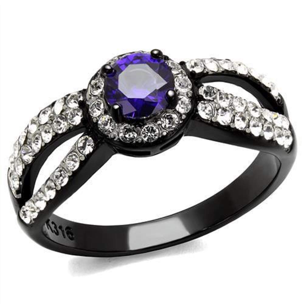 WildKlass Stainless Steel Ring Two-Tone IP Black Women AAA Grade CZ Tanzanite