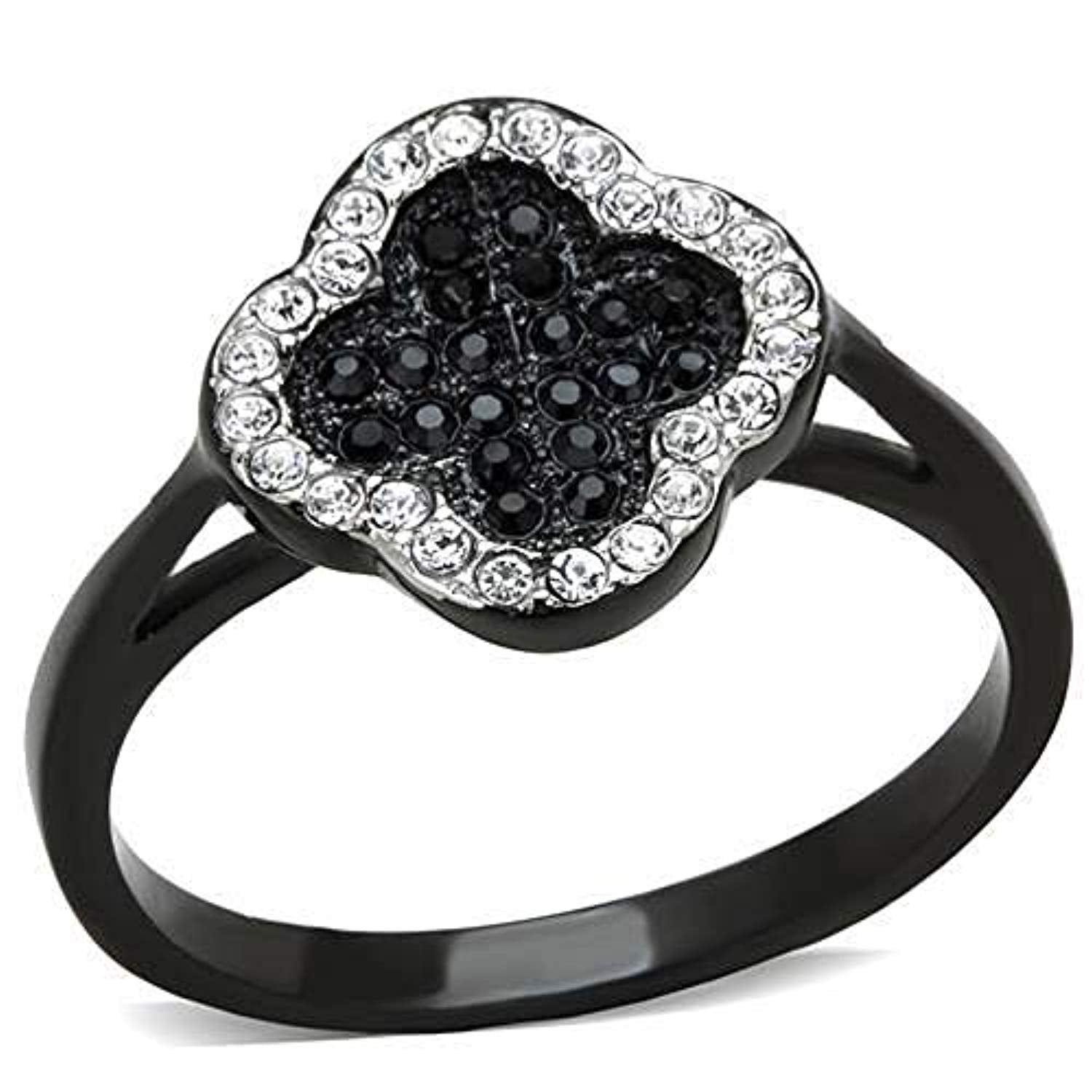 WildKlass Stainless Steel Ring Two-Tone IP Black Women Top Grade Crystal Jet