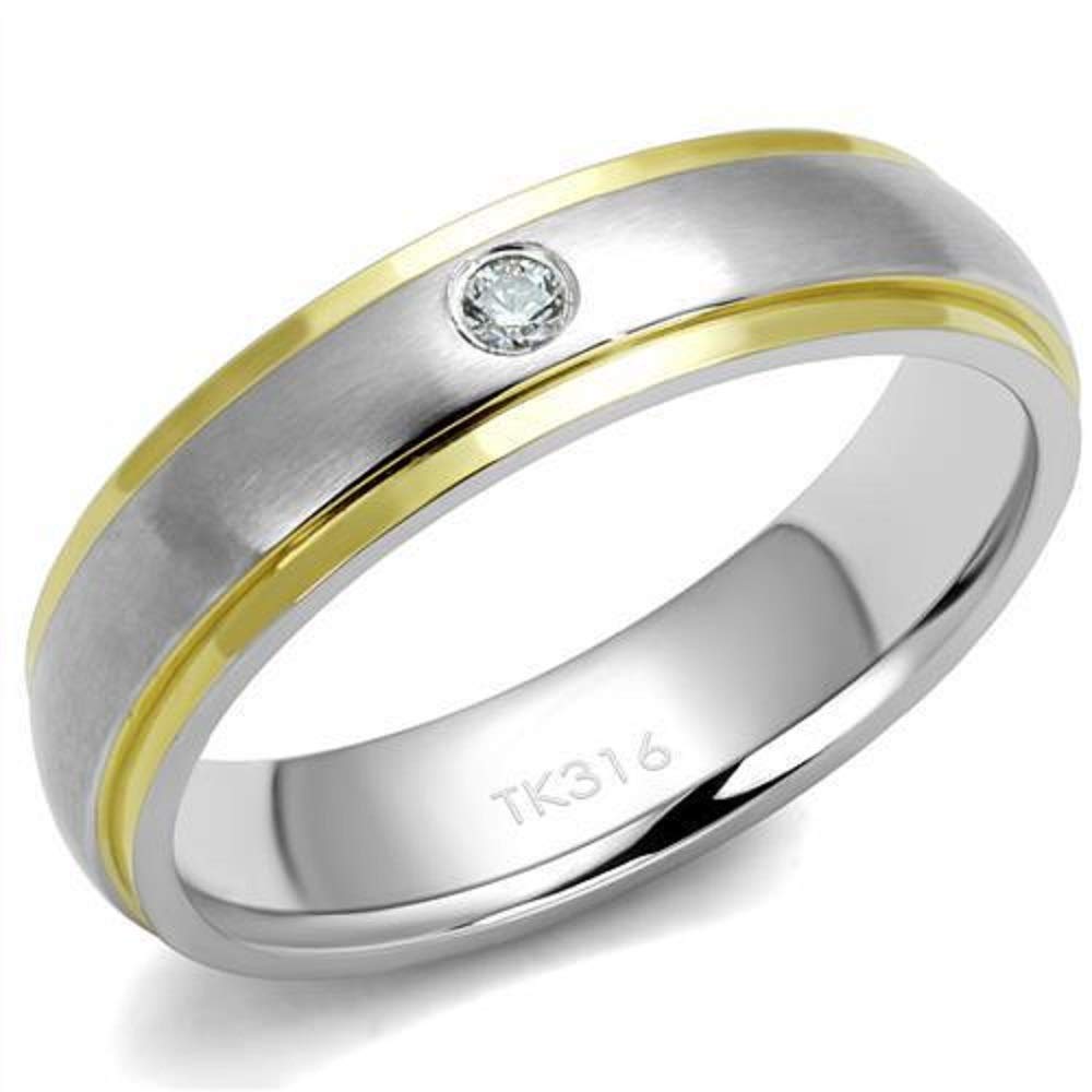 WildKlass Stainless Steel Ring Two-Tone IP Gold Men AAA Grade CZ Clear
