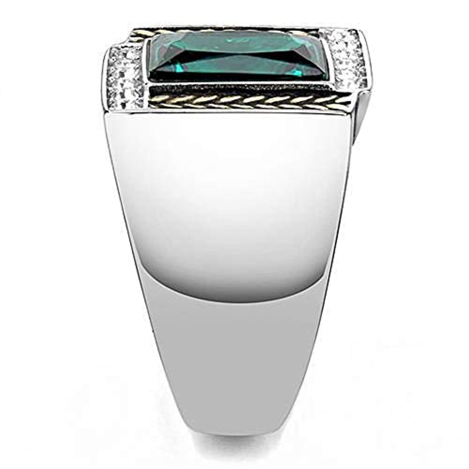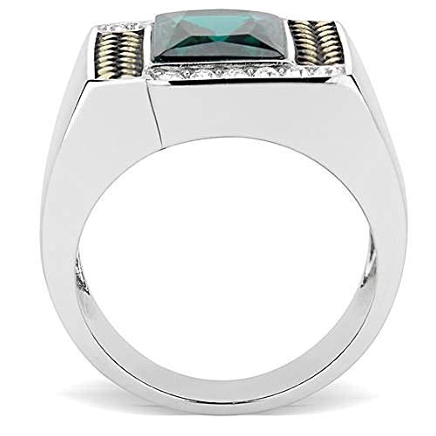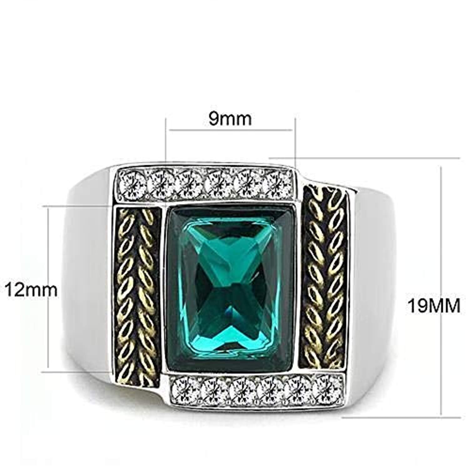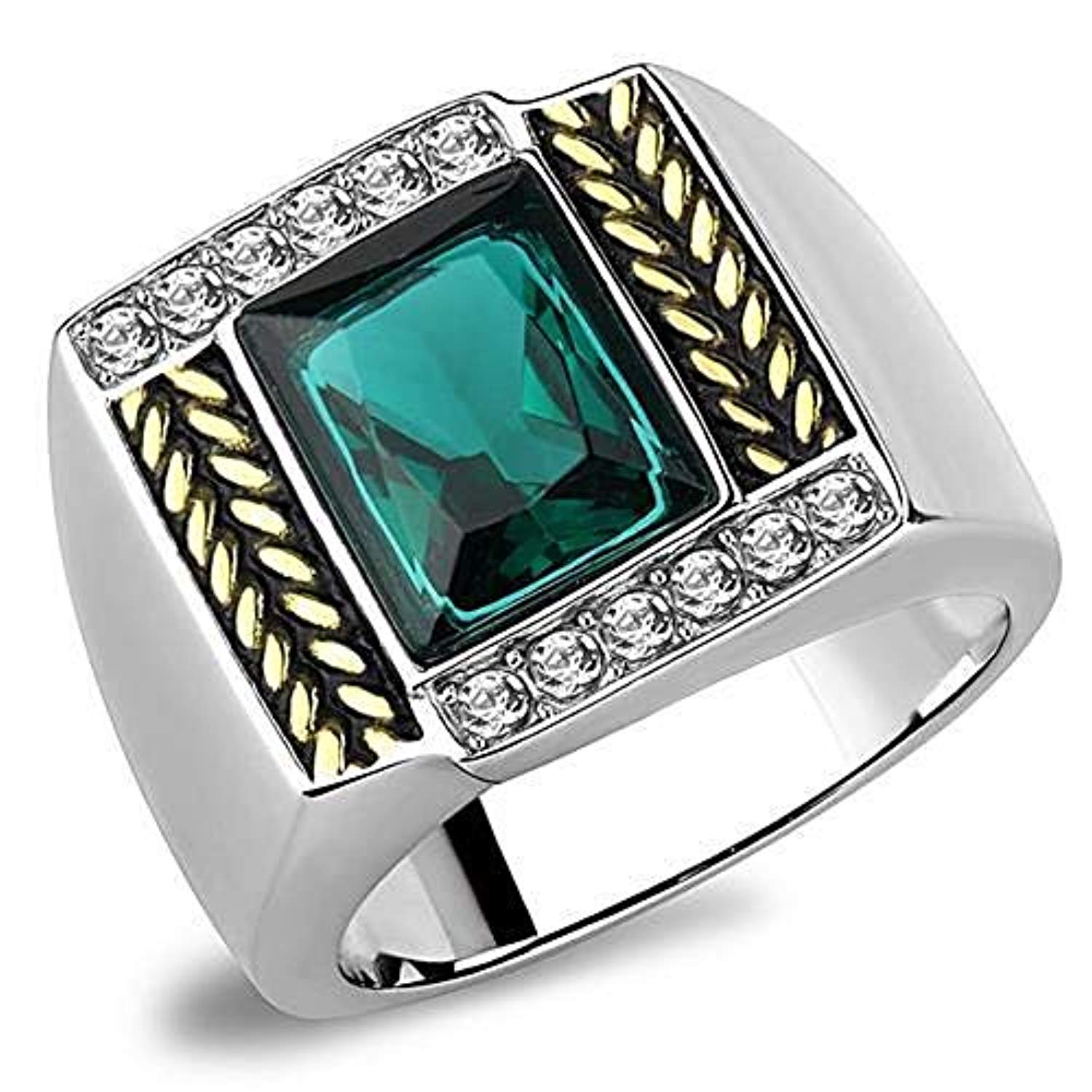 WildKlass Stainless Steel Ring Two-Tone IP Gold Men Synthetic Blue Zircon