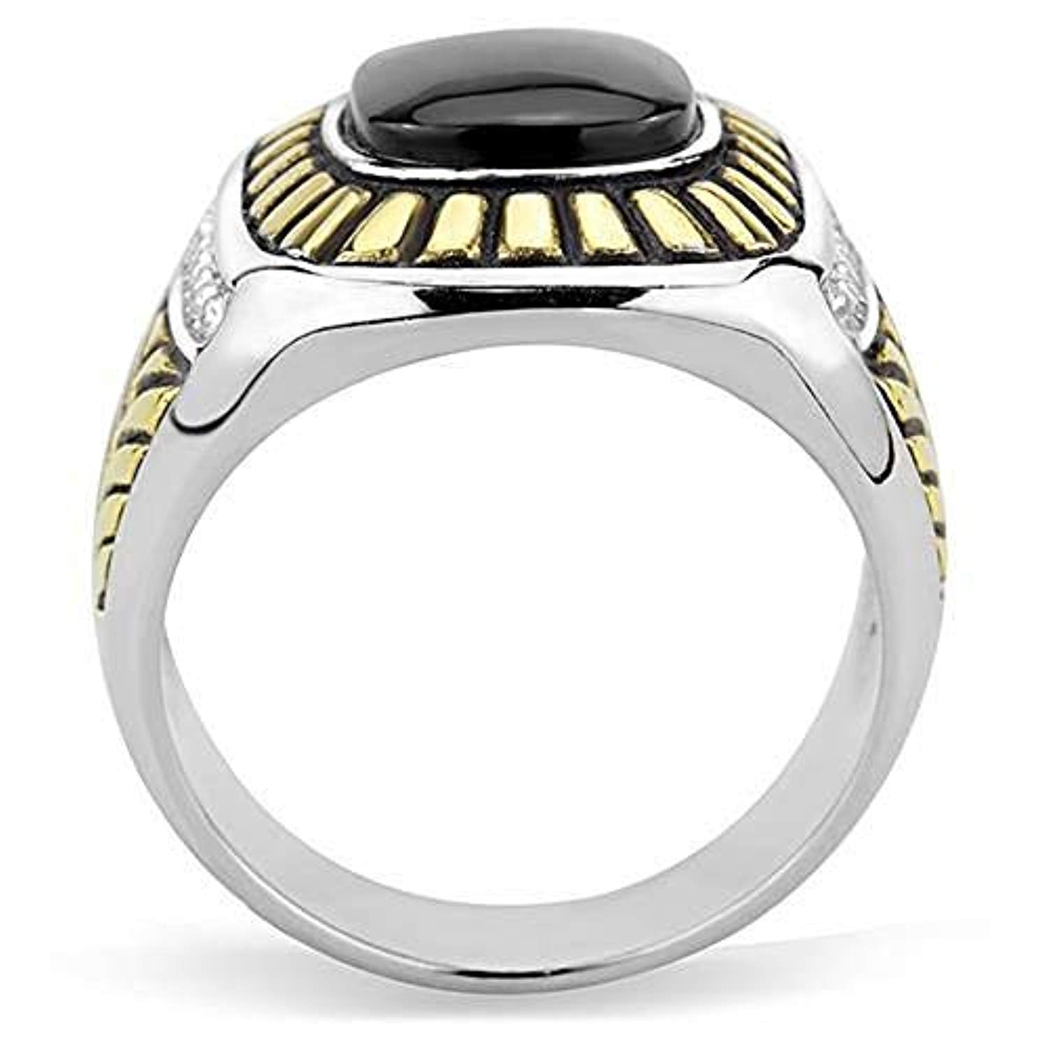 WildKlass Stainless Steel Ring Two-Tone IP Gold Men Synthetic Jet