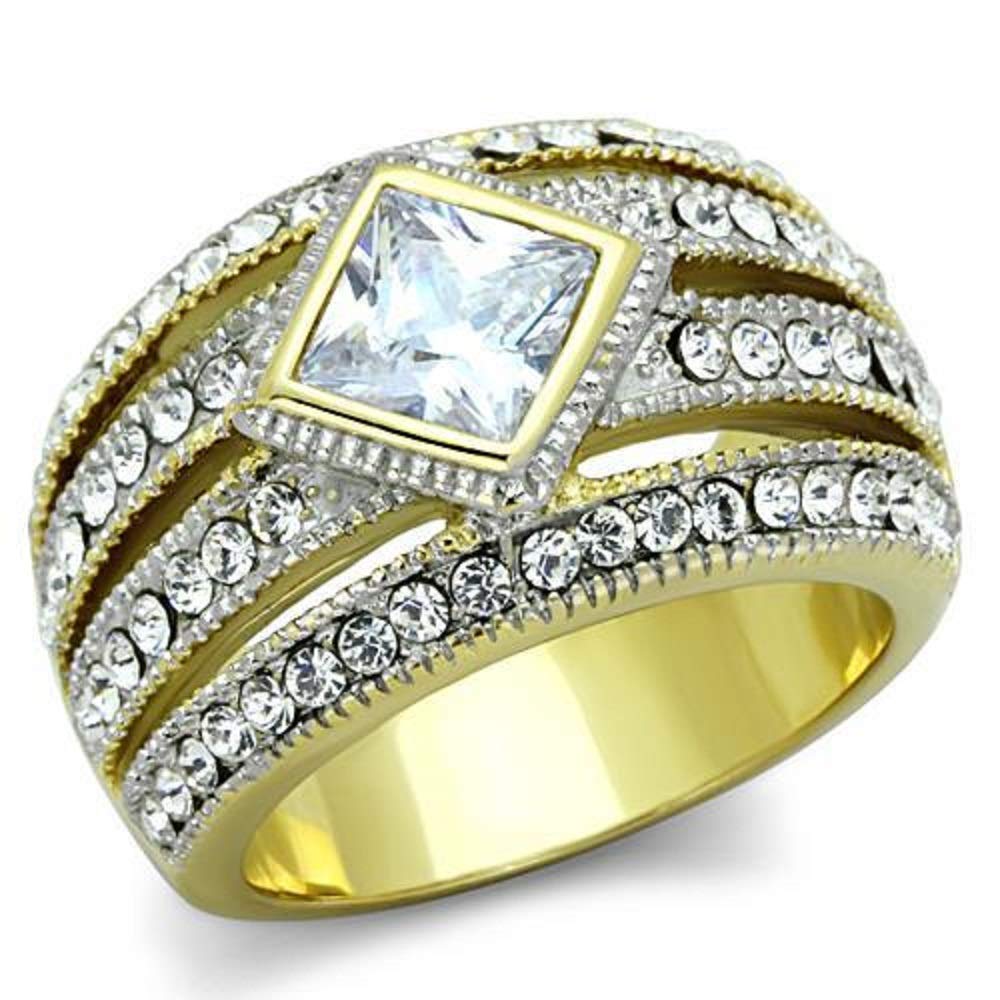 WildKlass Stainless Steel Ring Two-Tone IP Gold Women Diamond AAA Grade CZ Clear