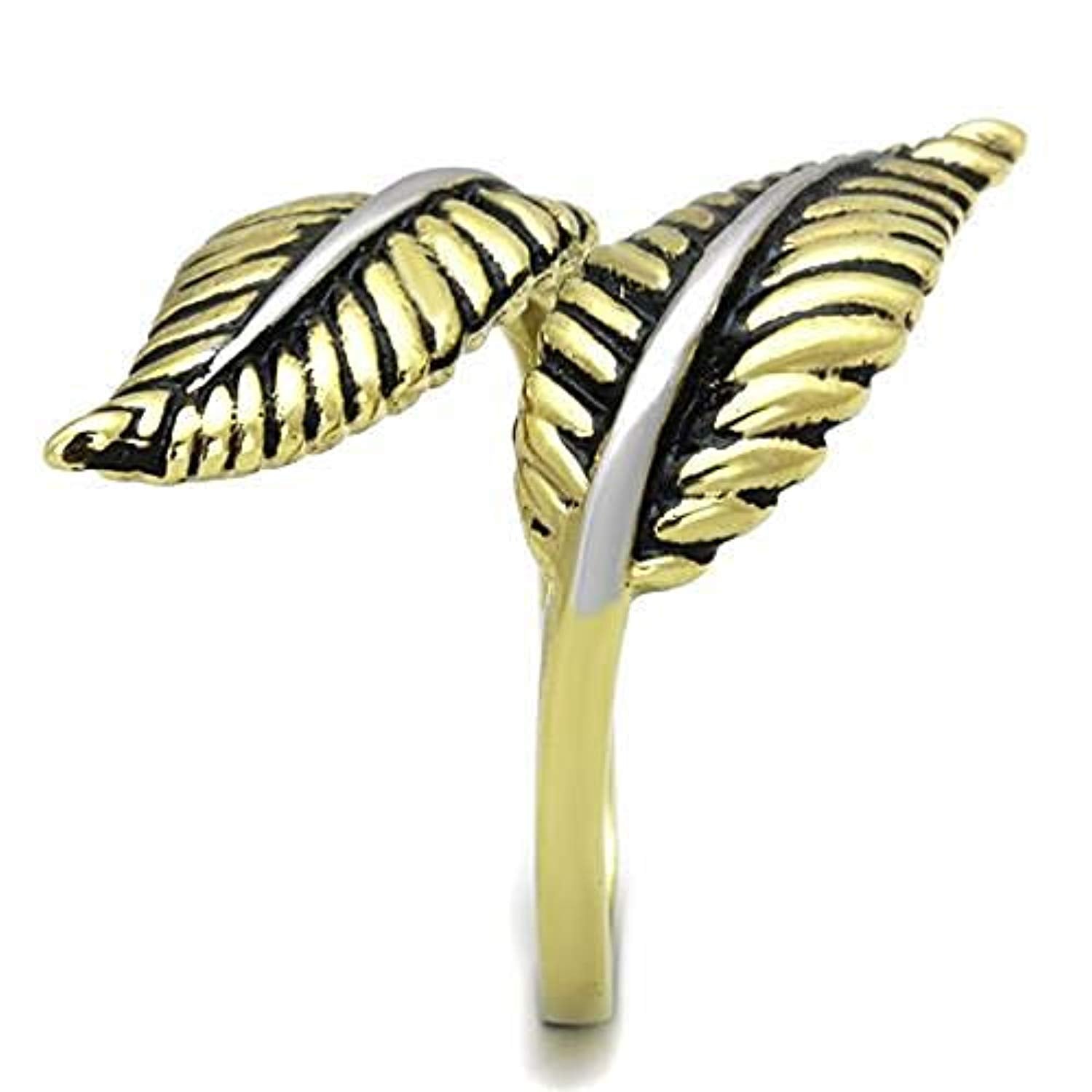 WildKlass Stainless Steel Ring Two-Tone IP Gold Women Leaf Epoxy Jet