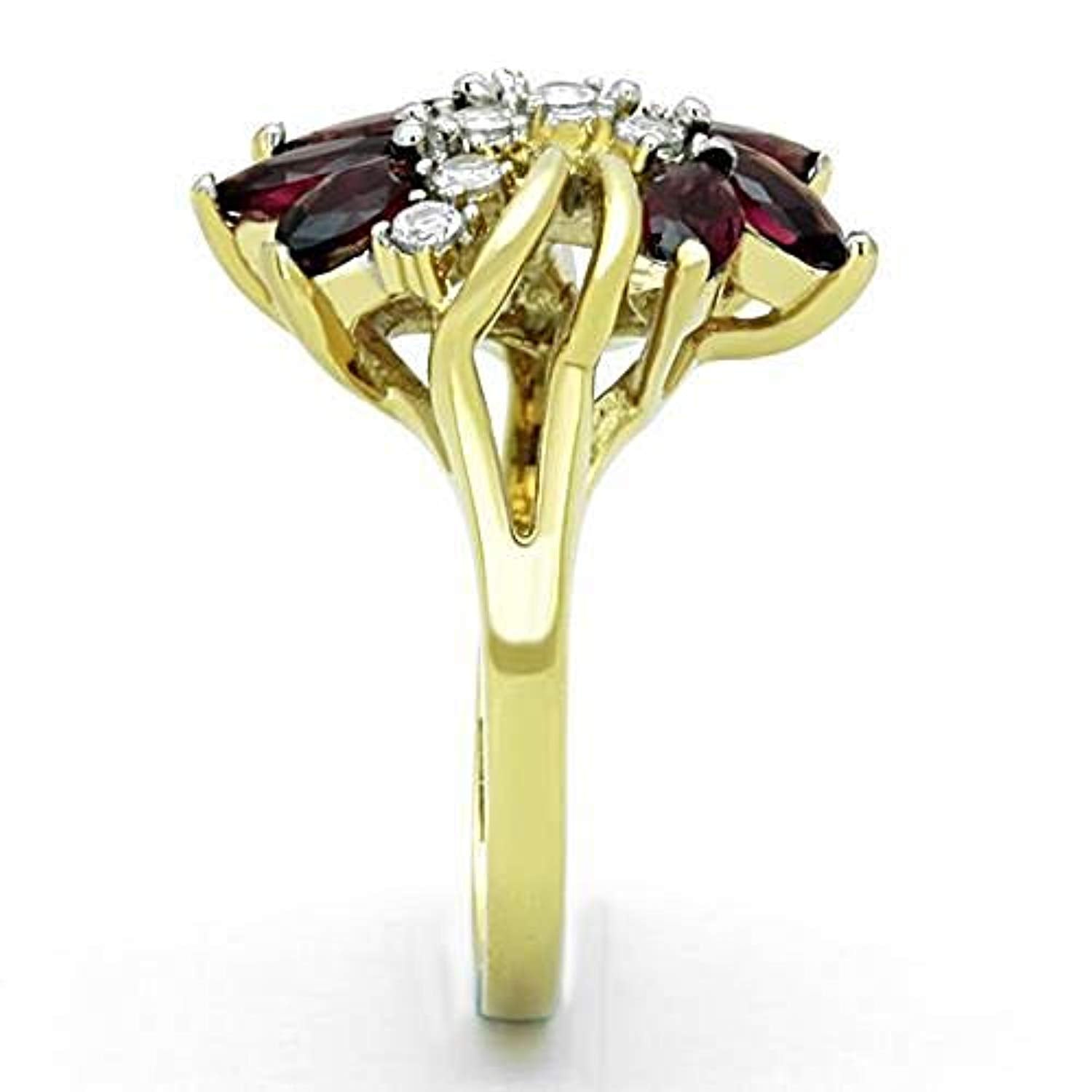 WildKlass Stainless Steel Ring Two-Tone IP Gold Women Synthetic Amethyst
