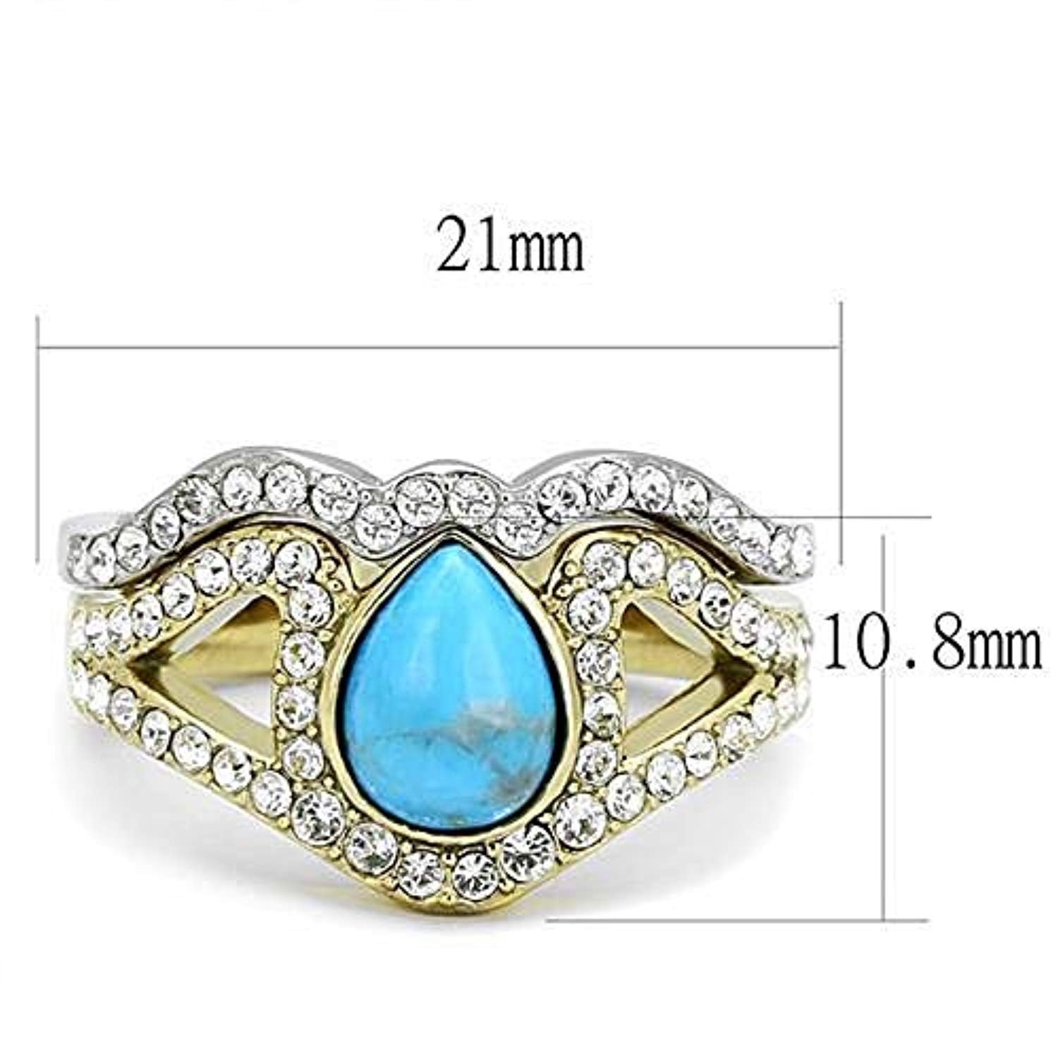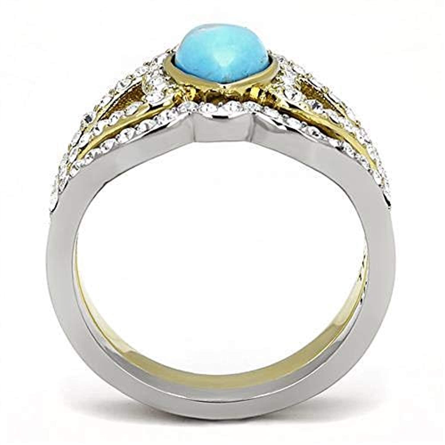 WildKlass Stainless Steel Ring Two-Tone IP Gold Women Synthetic Turquoise