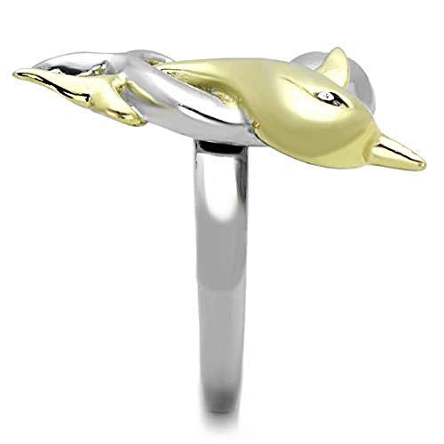 WildKlass Stainless Steel Ring Penguin Two-Tone IP Gold Women Top Grade Crystal Clear