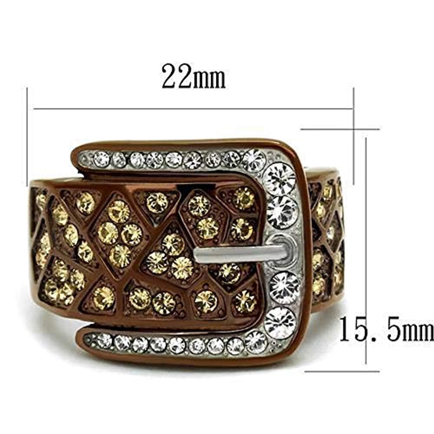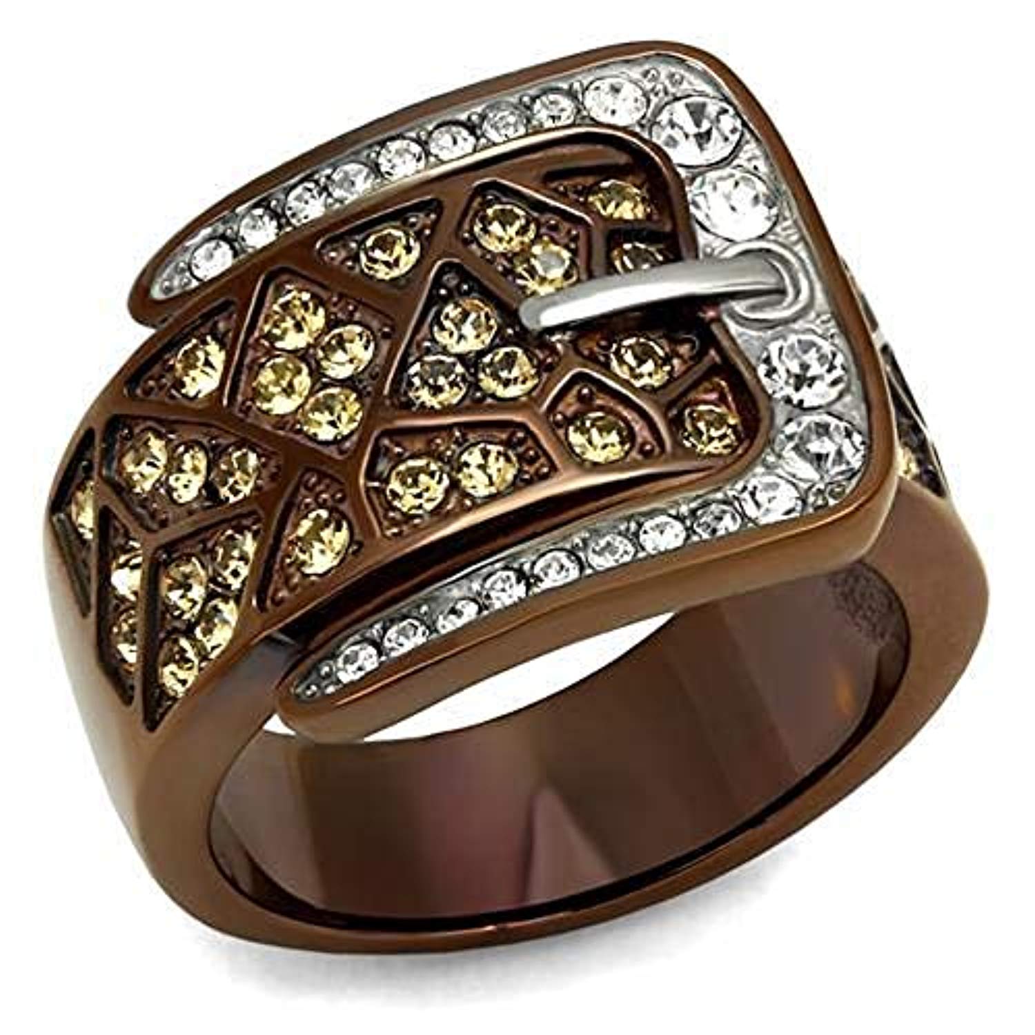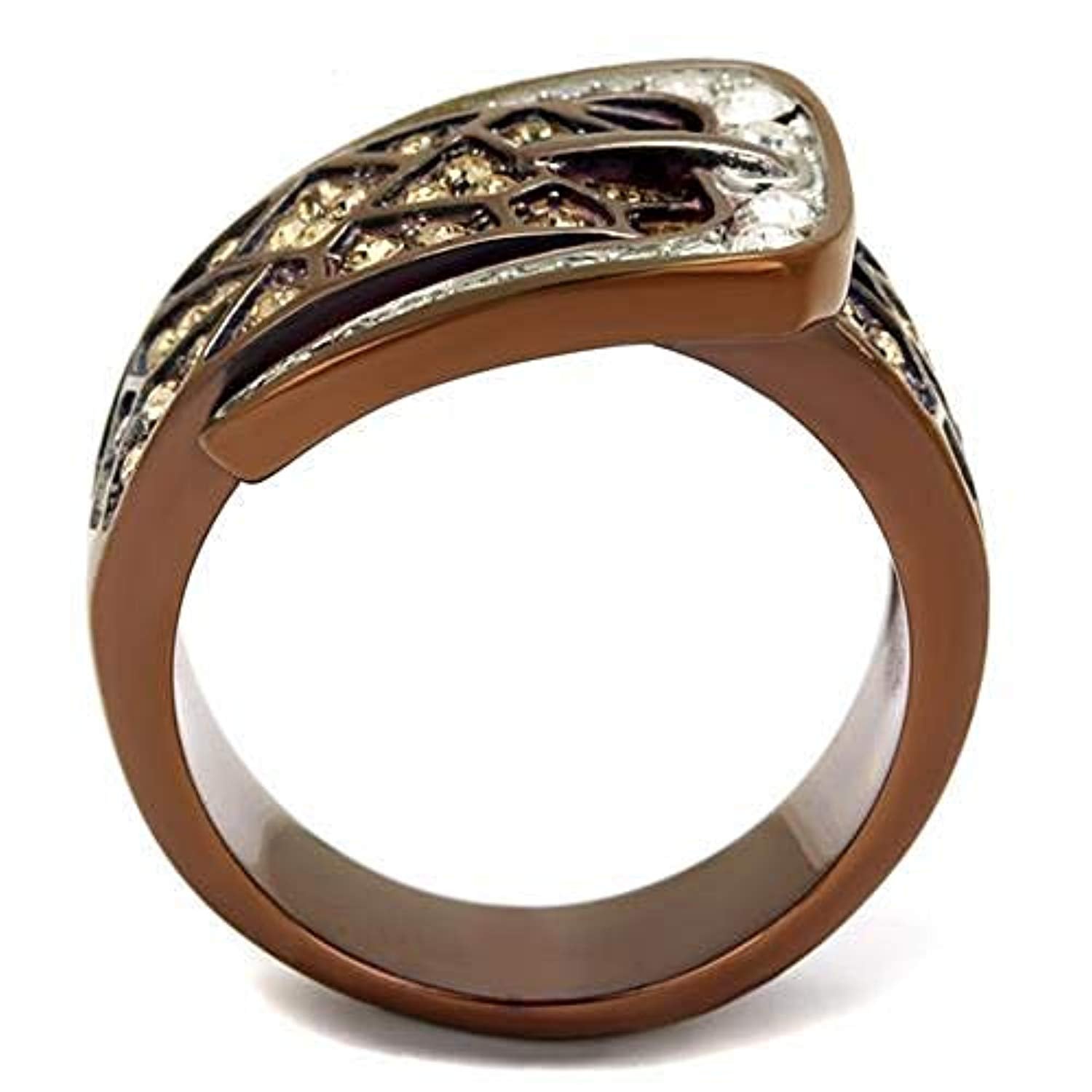 WildKlass Stainless Steel Ring Two Tone IP Light Brown (IP Light Coffee) Women Top Grade Crystal Citrine Yellow