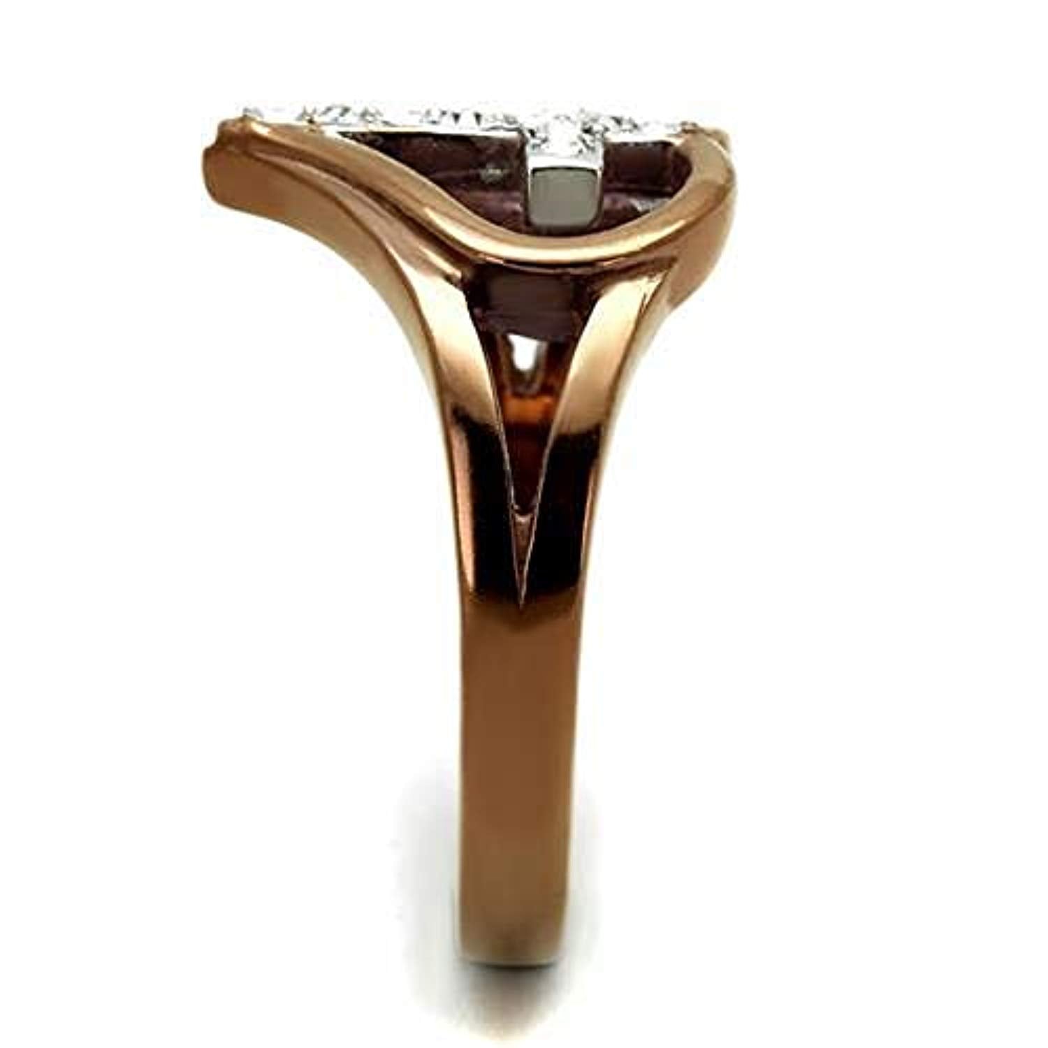 WildKlass Stainless Steel Ring Two Tone IP Light Brown (IP Light Coffee) Women Top Grade Crystal Clear