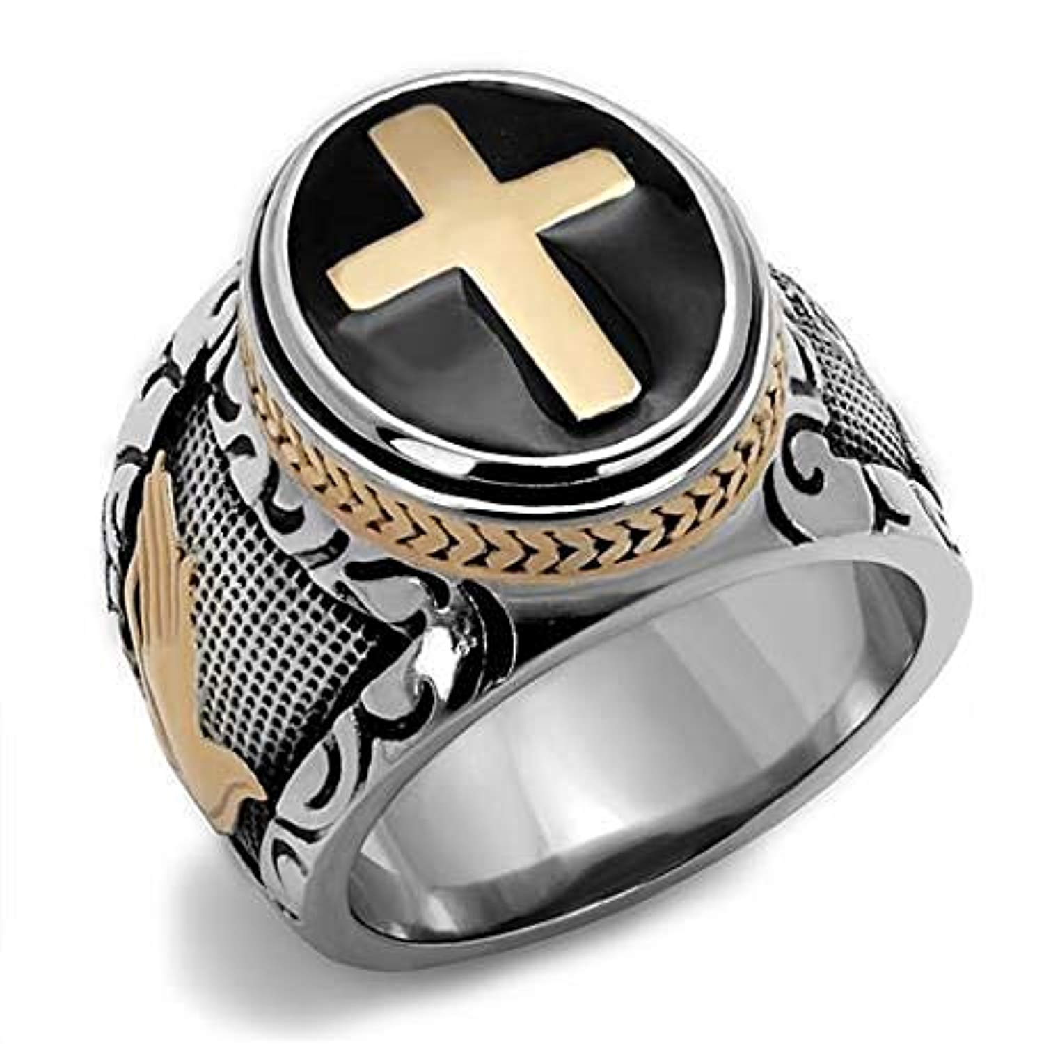 WildKlass Stainless Steel Ring Two-Tone IP Rose Gold Men Epoxy Jet