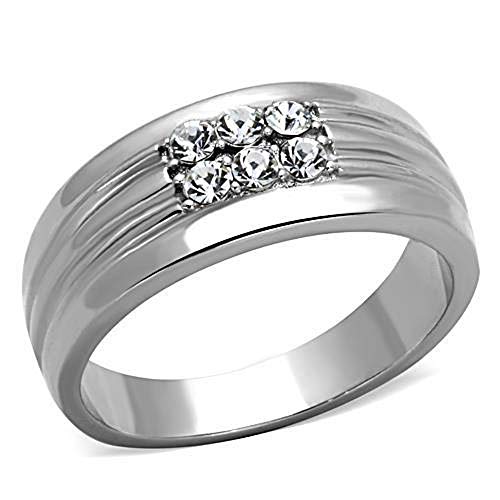 WildKlass Stainless Steel Ring Wedding High Polished (no Plating) Men Top Grade Crystal Clear