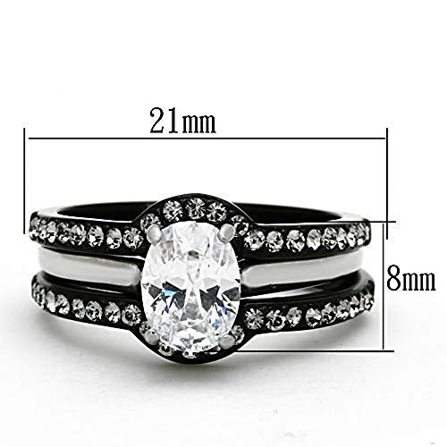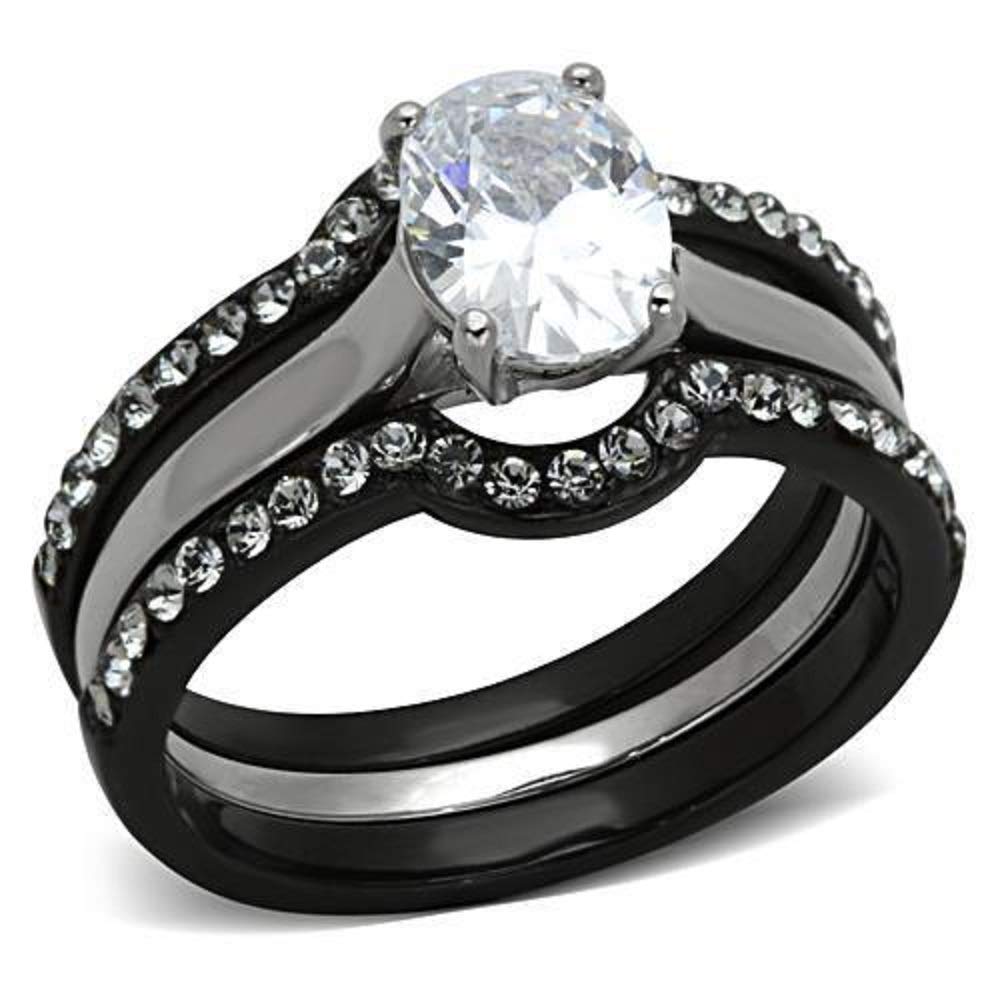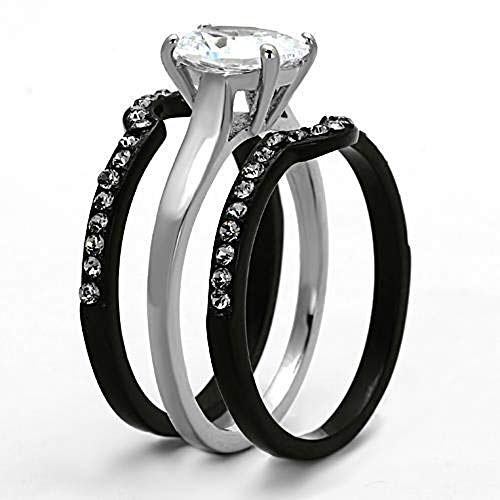 WildKlass Stainless Steel Ring Wedding Two-Tone IP Black Women AAA Grade CZ Clear