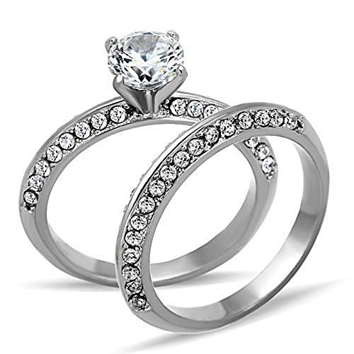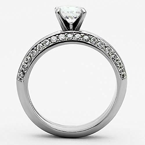 WildKlass Stainless Steel Wedding Ring High Polished (no Plating) Women AAA Grade CZ Clear