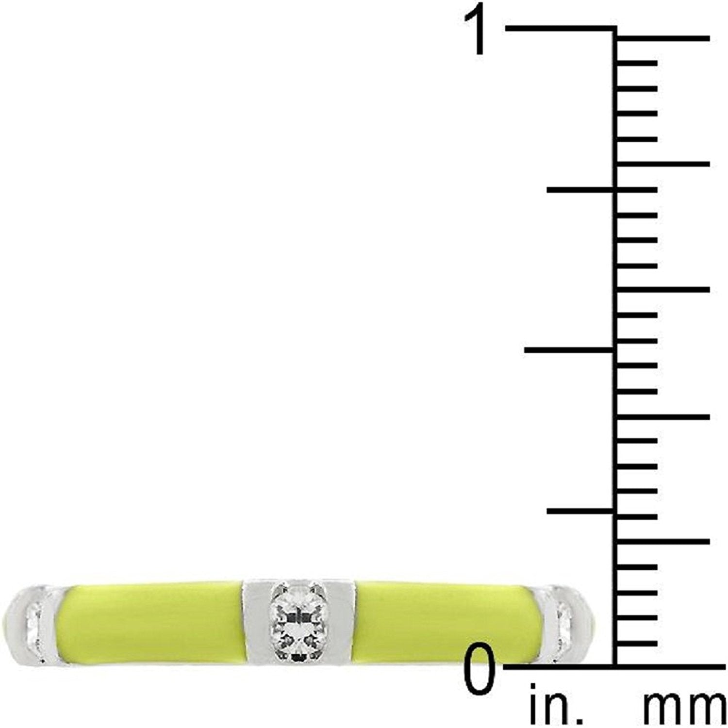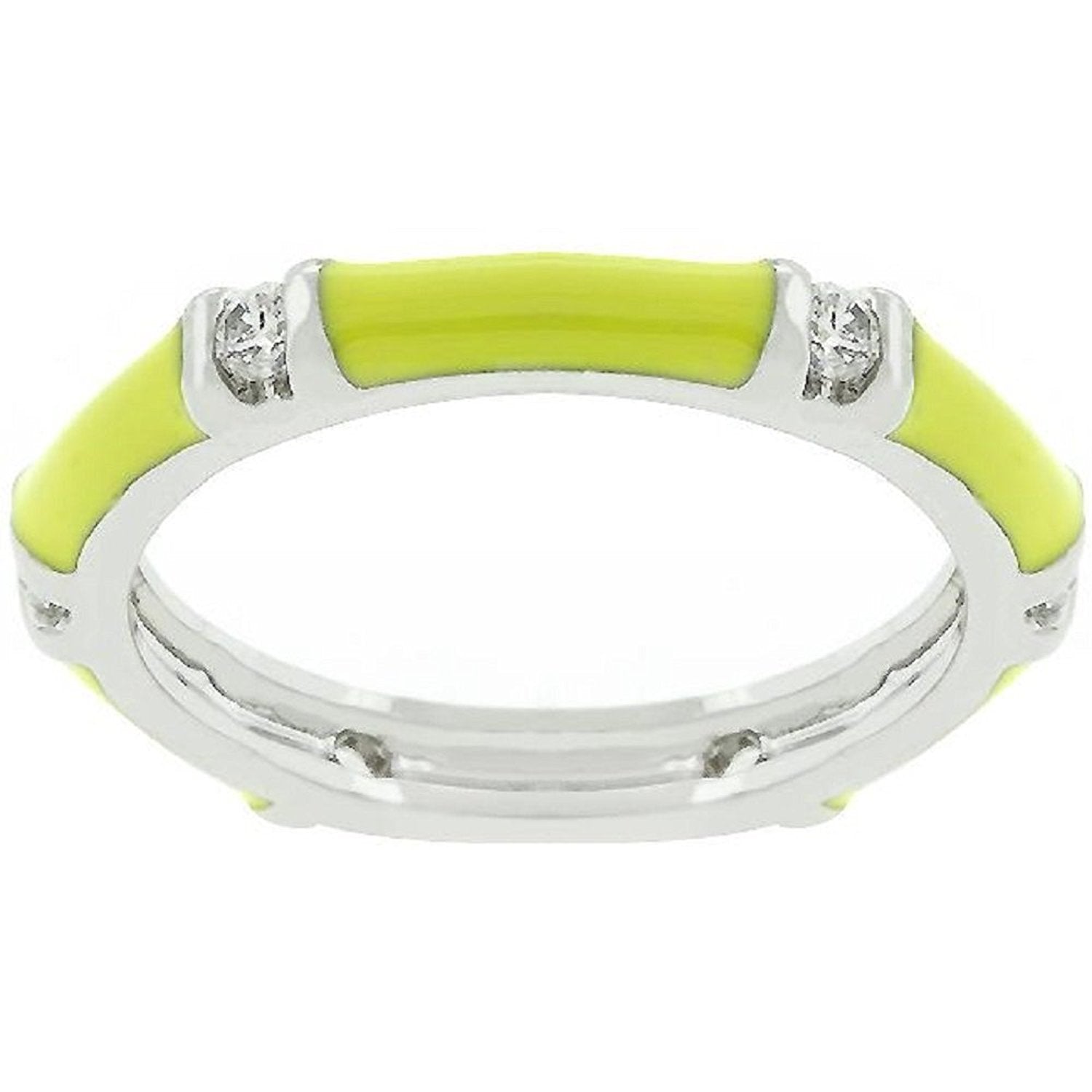 • Accessorize your right to have fun with the Yellow Enamel Stacker. Posh yellow enamel fused with silver tone trim exudes the perfect amount of color and accented round cubic zirconia compliment this piece. Try accessorizing with our other Enamel Stackers and stack 'em up. Genuine Rhodium Plating is achieved using an electroplating process that coats the item with heavy layers of rhodium a close cousin to platinum which gives our jewelry a platinum luster.