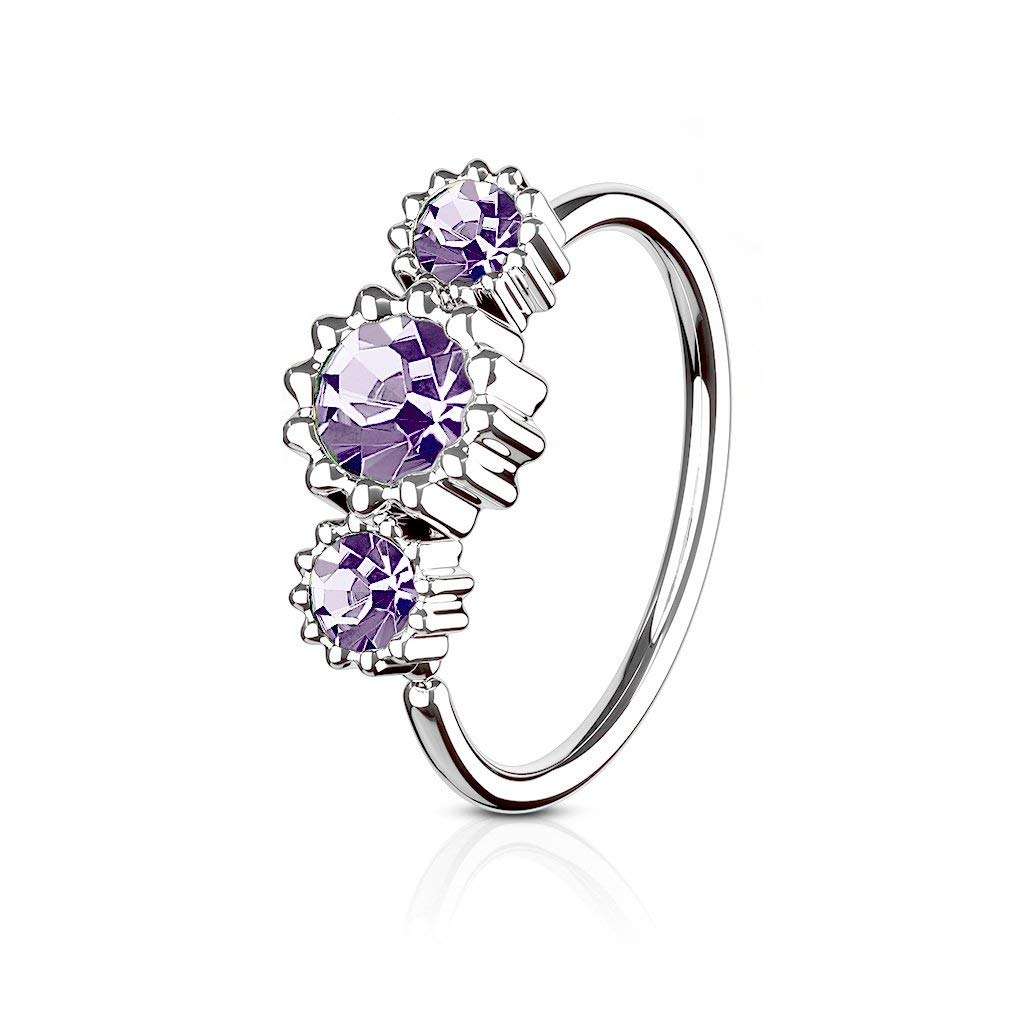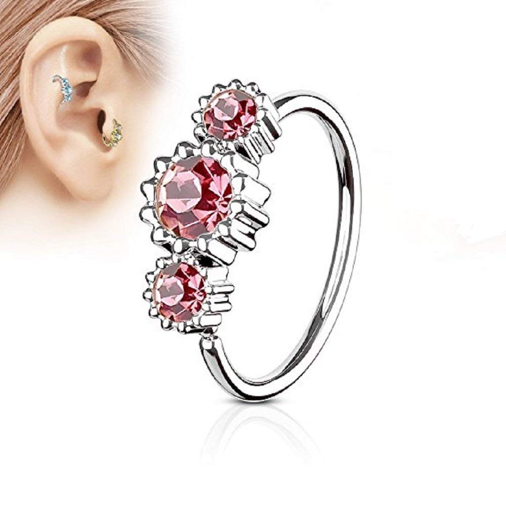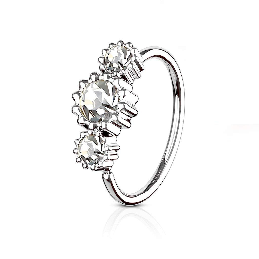 3 Round CZ Set 316L Surgical Steel WildKlass Hoop Ring for Nose & Ear Cartilage