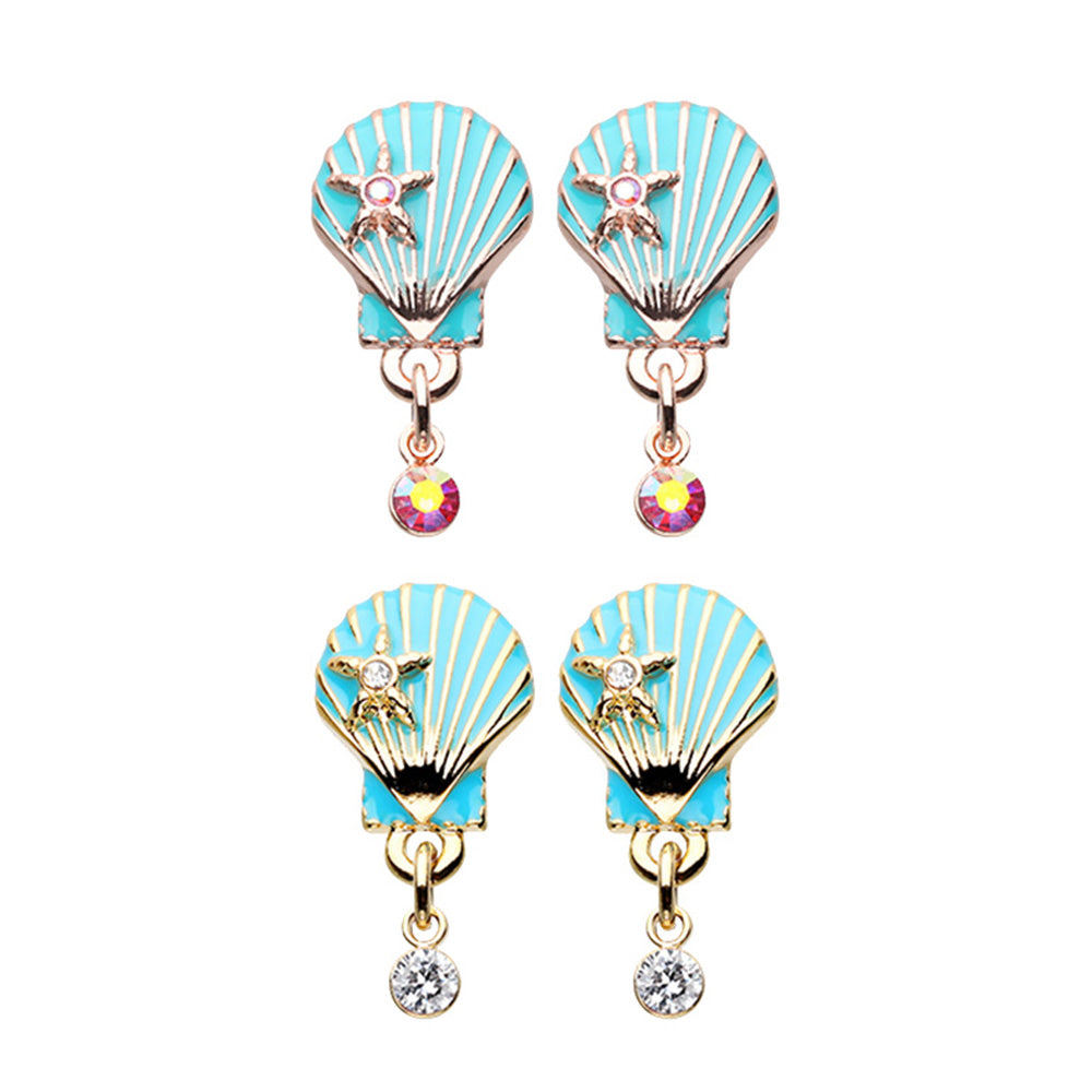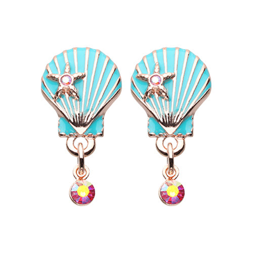 Gold, Rose Gold Ariel's Seashell Star Ear Stud Earrings