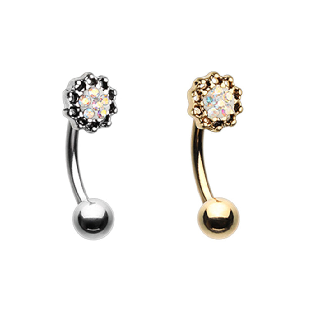 Silver & Gold Lotus Sprinkle Dot Filigree Curved Barbell Eyebrow Ring