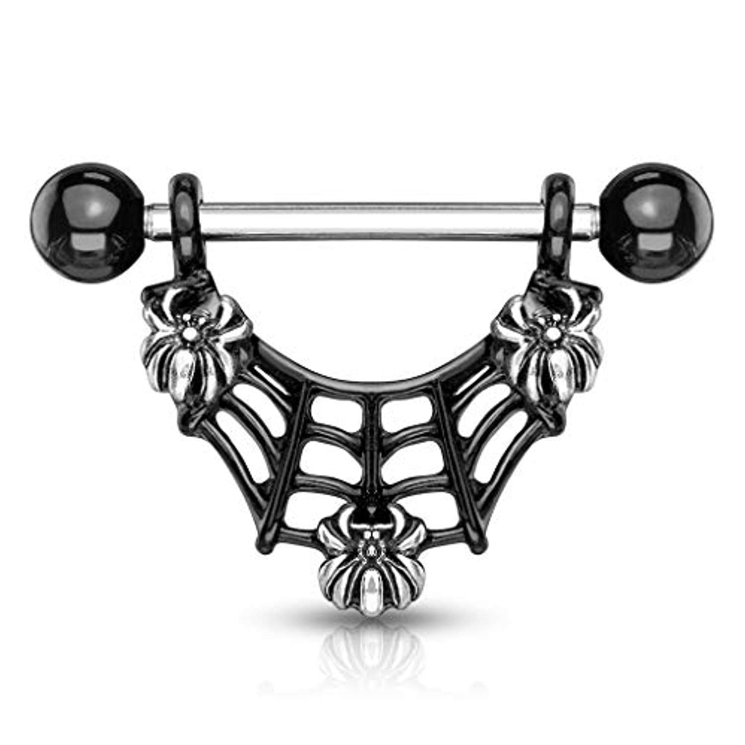 3 Spiders On Black IP Spider Web Dangle 316L Surgical Steel WildKlass Nipple Rings