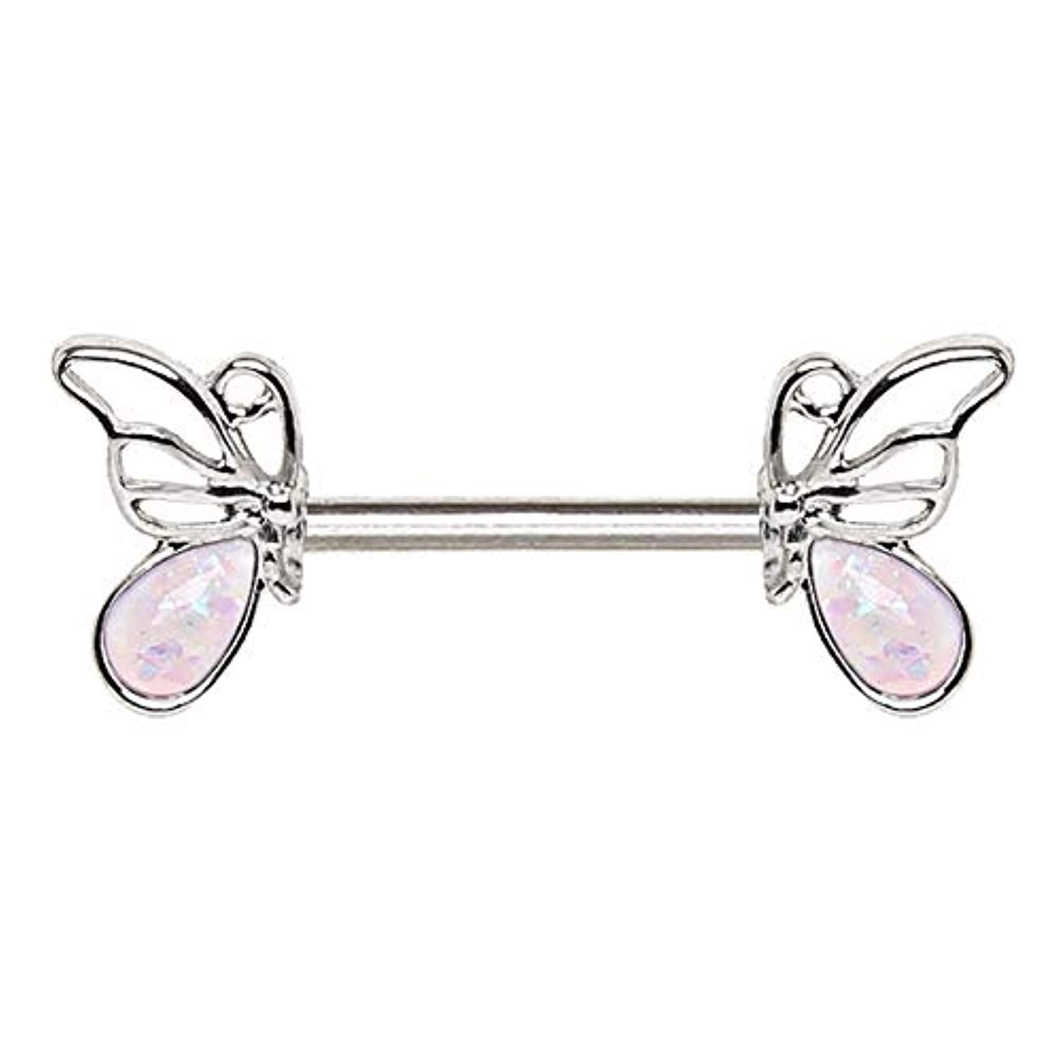 316L Stainless Steel Synthetic Opal Butterfly WildKlass Nipple Bar