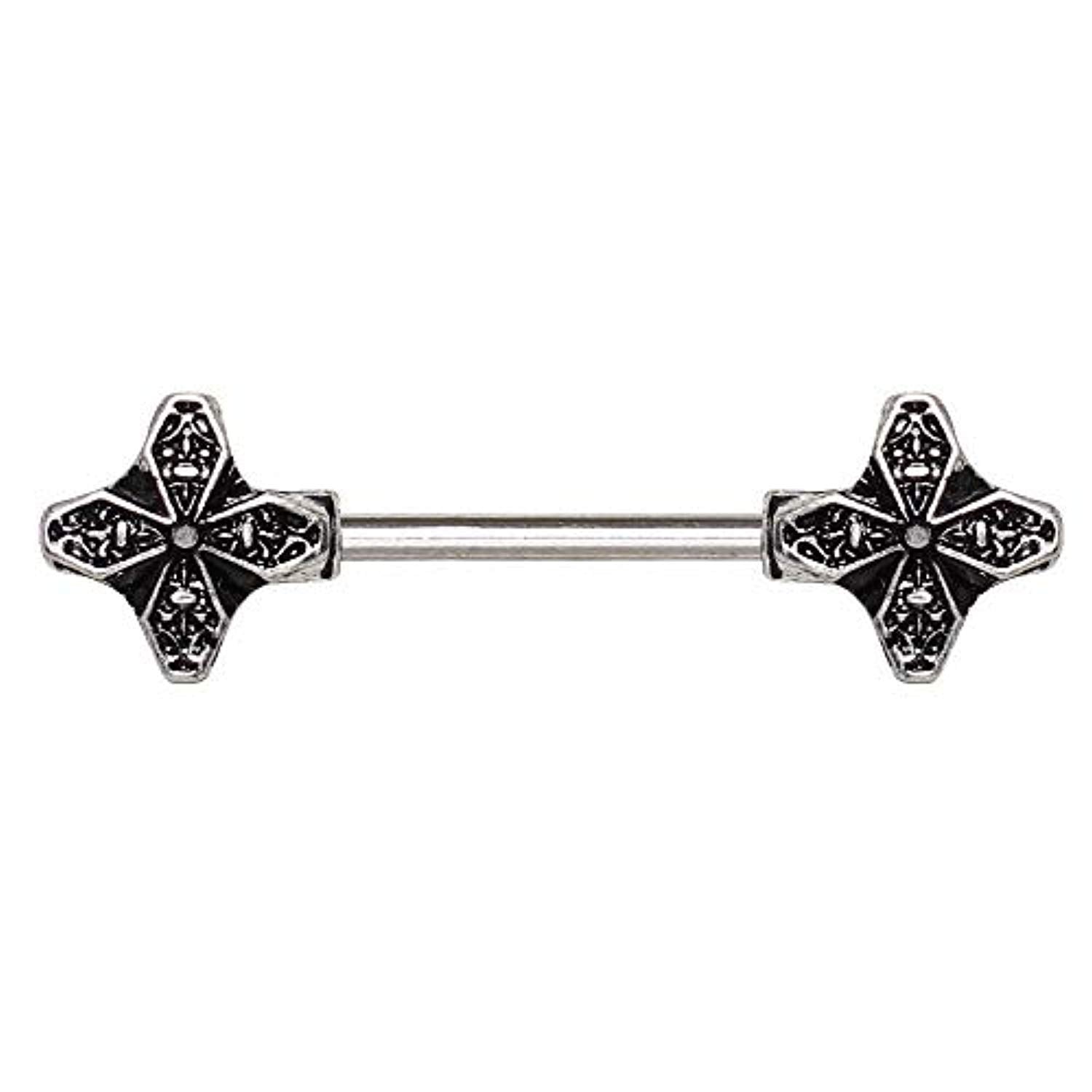 WILDKLASS Antique Stainless Steel Heirloom Flower Nipple Barbell Ring