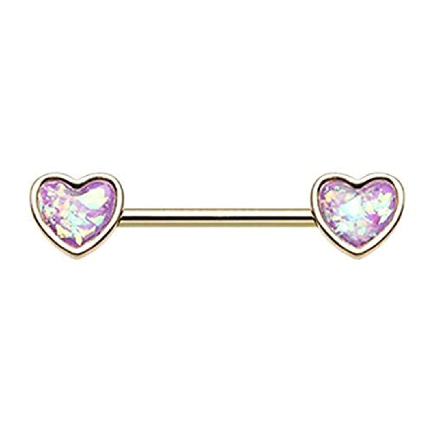 Golden Glitter Opal Heart Inlay WildKlass Nipple Barbell Ring