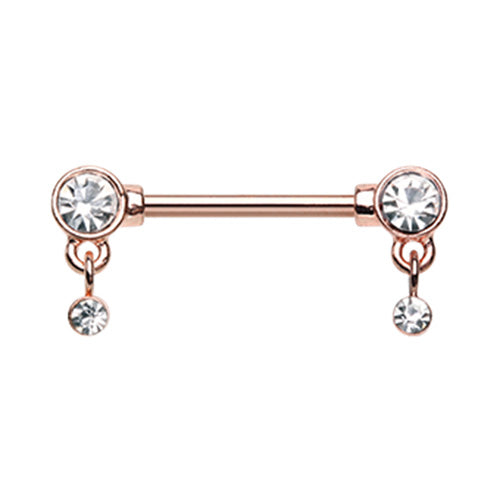 Rose Gold & Silver Bezel Dangle Drop Nipple Barbell Ring