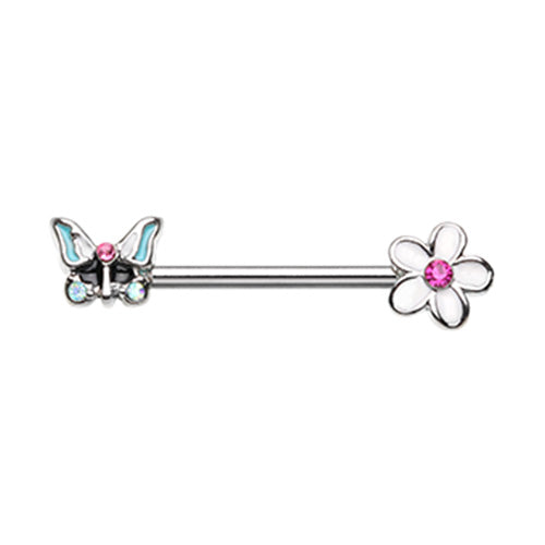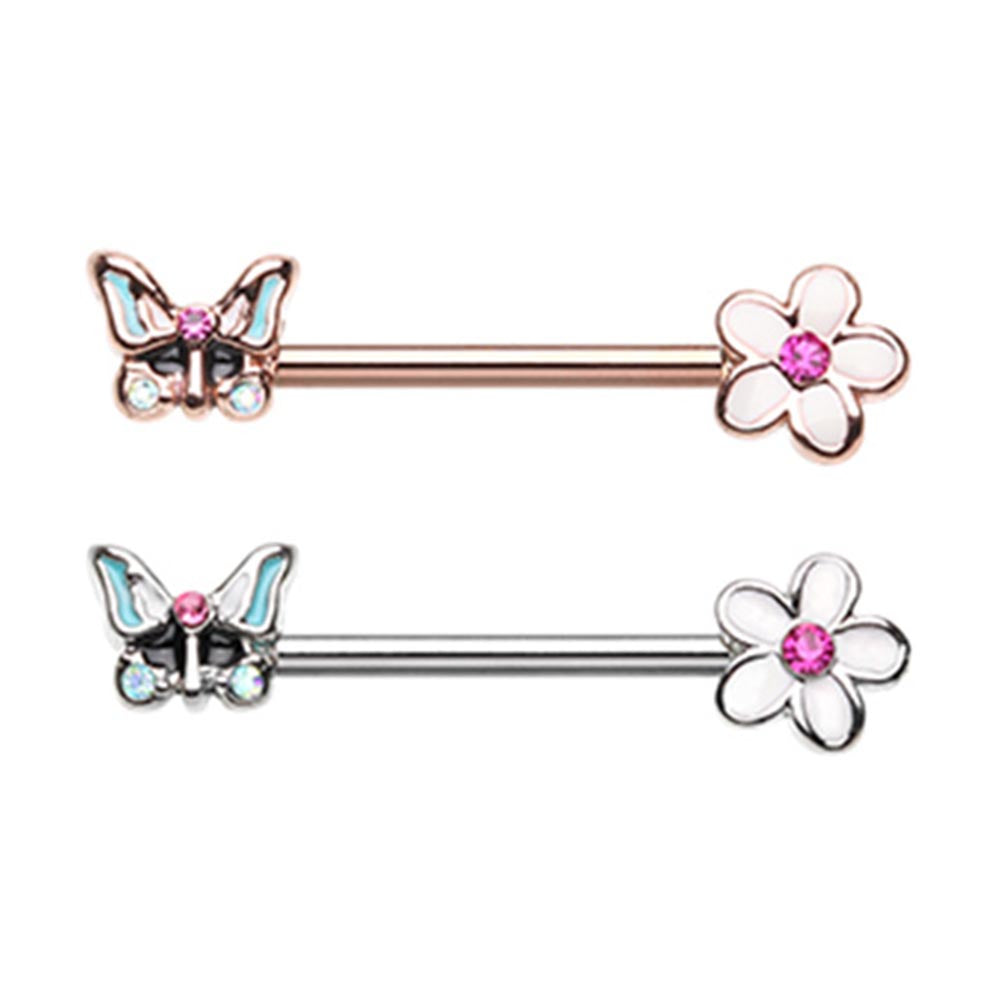 Rose Gold & Silver Spring Butterfly Flower Nipple Barbell Ring