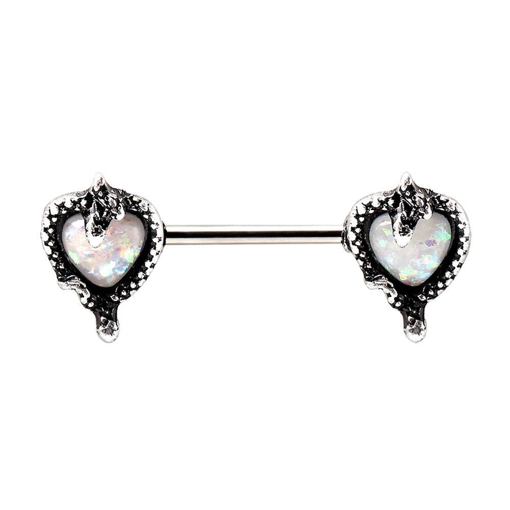 - Material: 316L Stainless Steel, Zinc Alloy, Synthetic Opal 316L Stainless Steel Synthetic Opal Heart with Snake Nipple Bar More Views