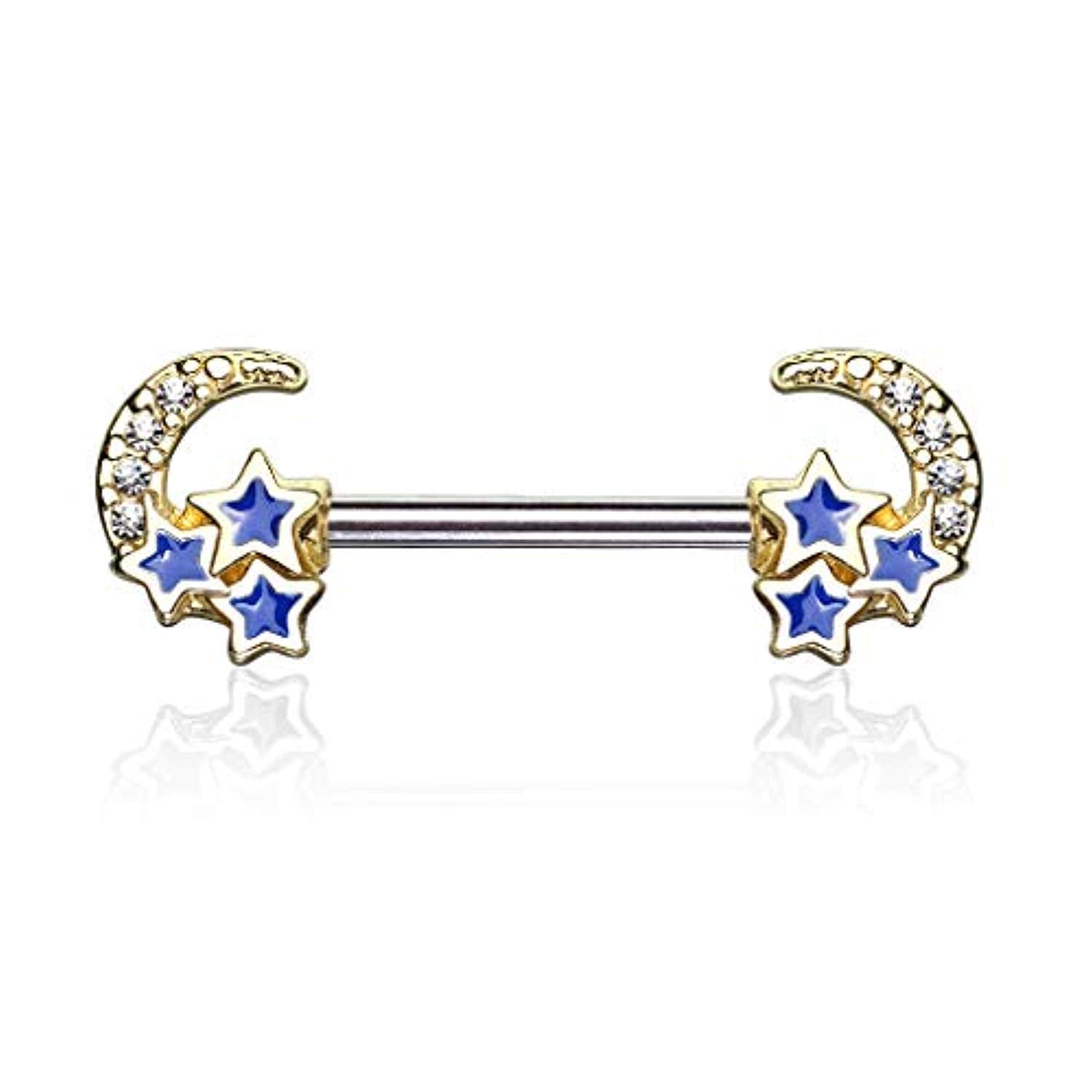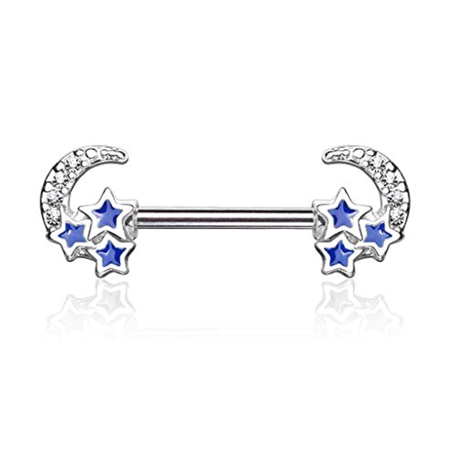 WildKlass CZ Paved Crescent Moon with 3 Blue Stars 316L Surgical Steel Nipple Barbell Rings