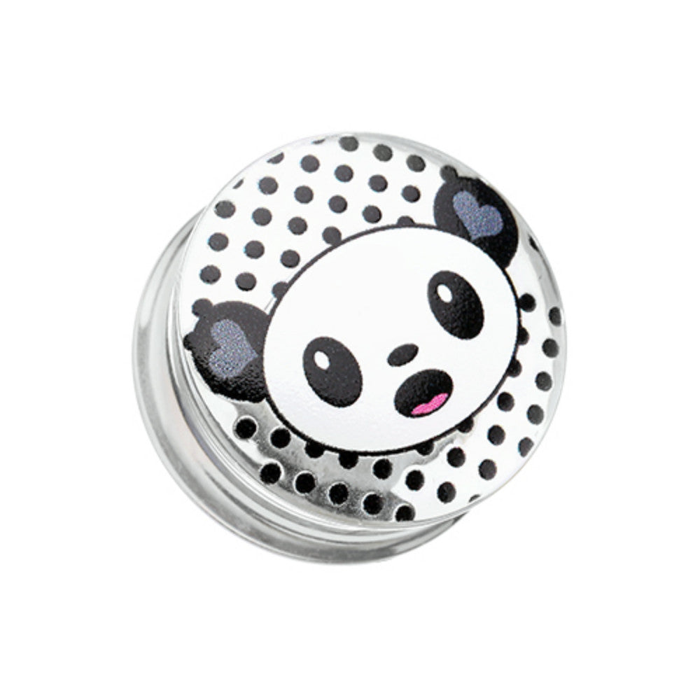 Adorable Baby Panda Clear UV Double Flared Ear Gauge Plug