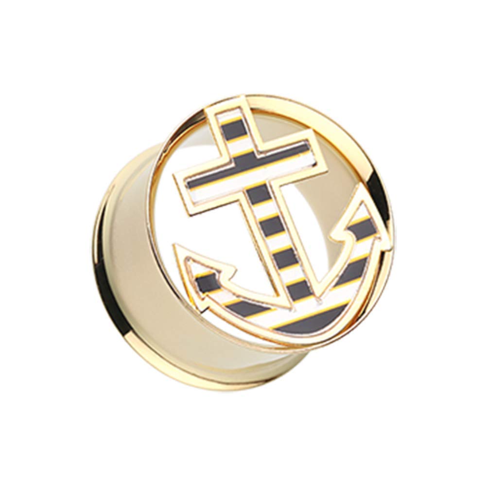 Golden Nautical Stripe Anchor Double Flared Ear Gauge WildKlass Plug