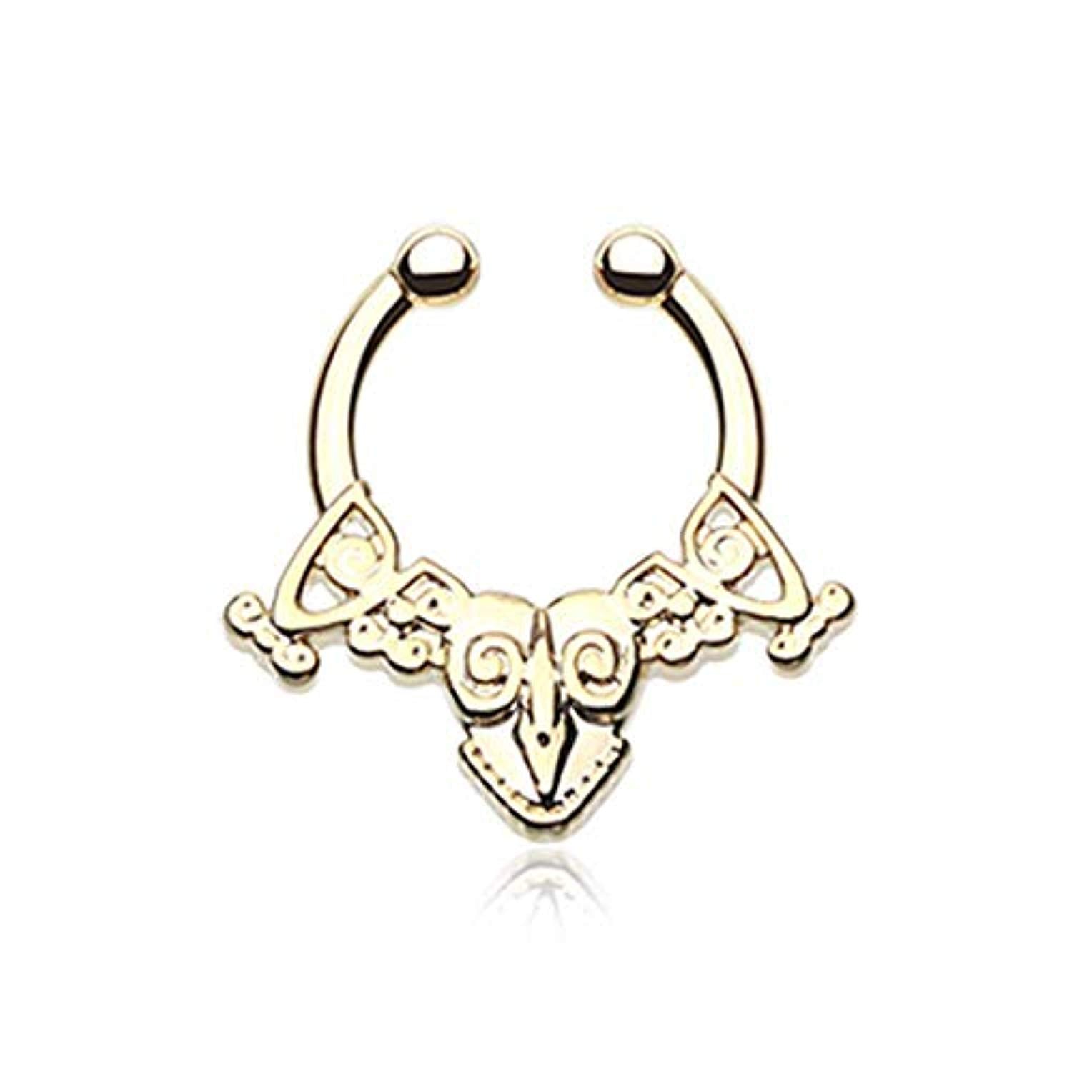 Golden Luria Tribal Filigree WildKlass Fake Septum Clip-On Ring