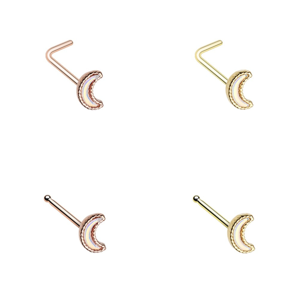 Golden & Rose Gold Illuminating Moon Shape L-Shape & Stud Nose Ring
