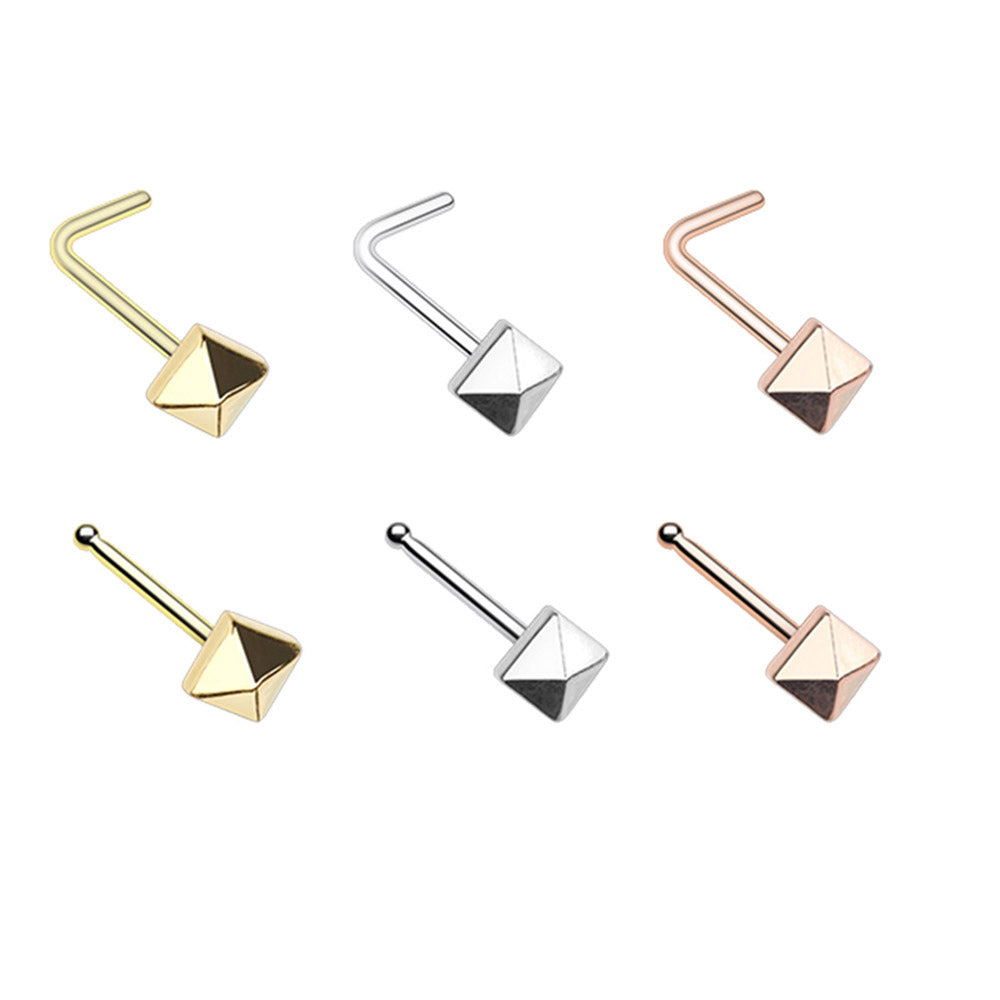Golden & Rose Gold & Silver Pyramid L-Shape & Stud Nose Ring