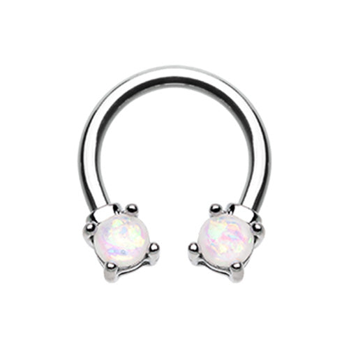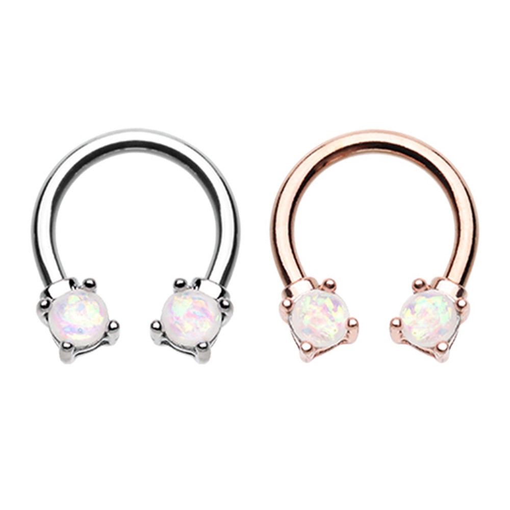 Rose Gold & Silver Prong Set Opal Glitter Horseshoe Circular Barbell