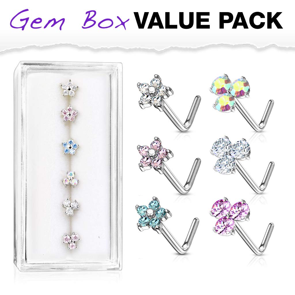- [Total 6pcs] All L-Shaped Nose Rings with Thickness: 20GA, Length: 1/4" (6mm)