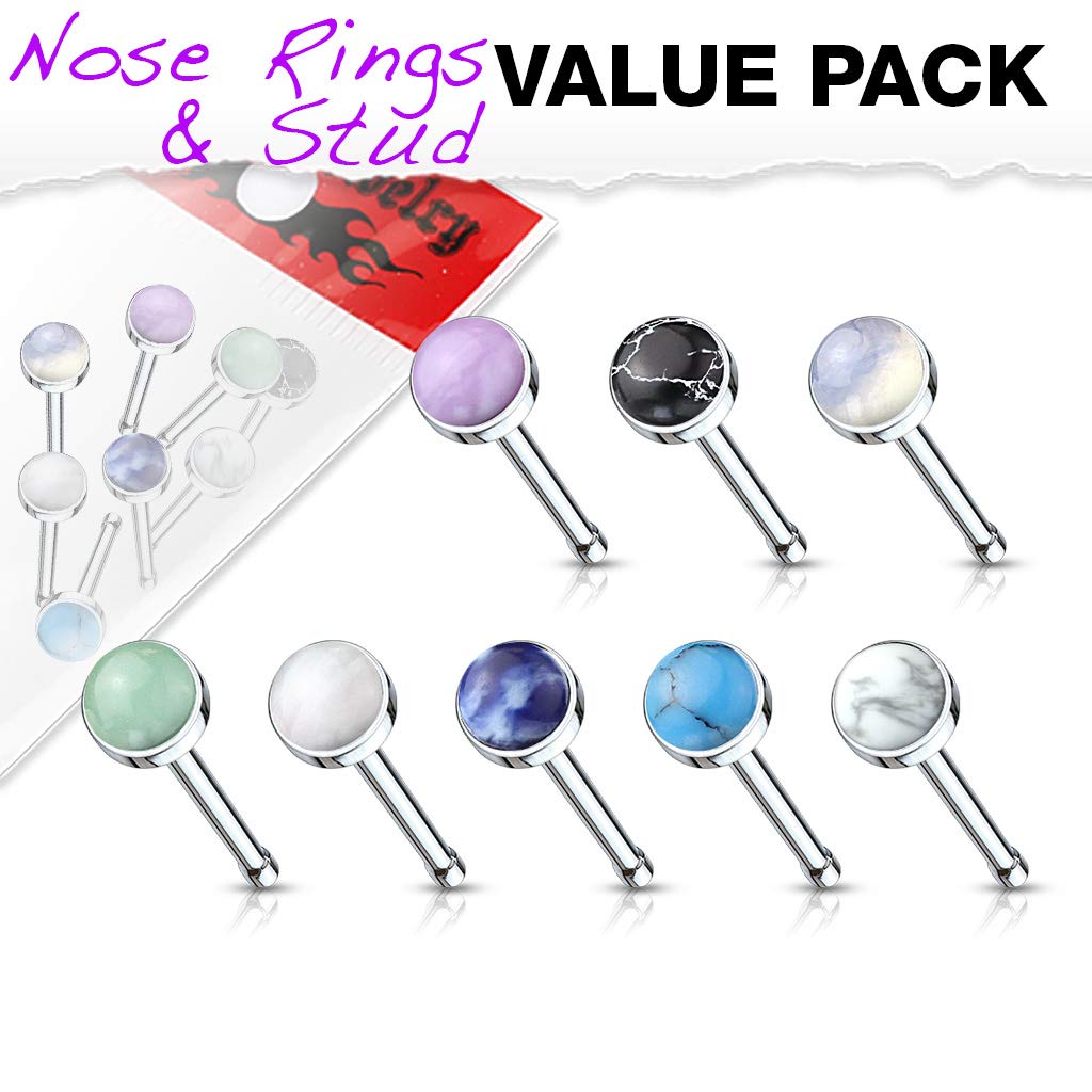 - [Total 8pcs] All Nose Bone Stud with different colors: Amethyst, Black Agate, Jade Green, Opalite, Rose Quartz, Sodalite Blue,Turquoise, White Howlite