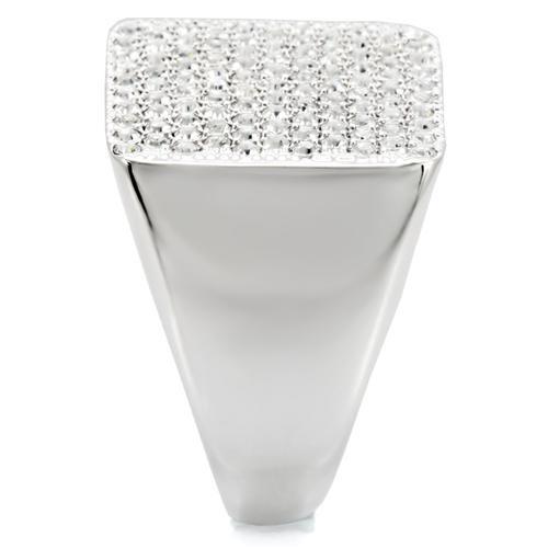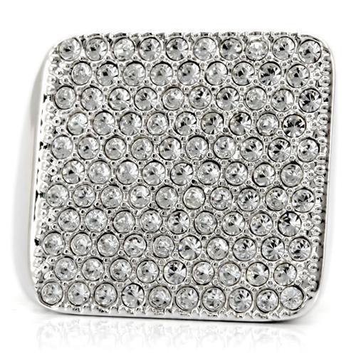 1W035 Rhodium Brass Ring with Top Grade Crystal in Clear