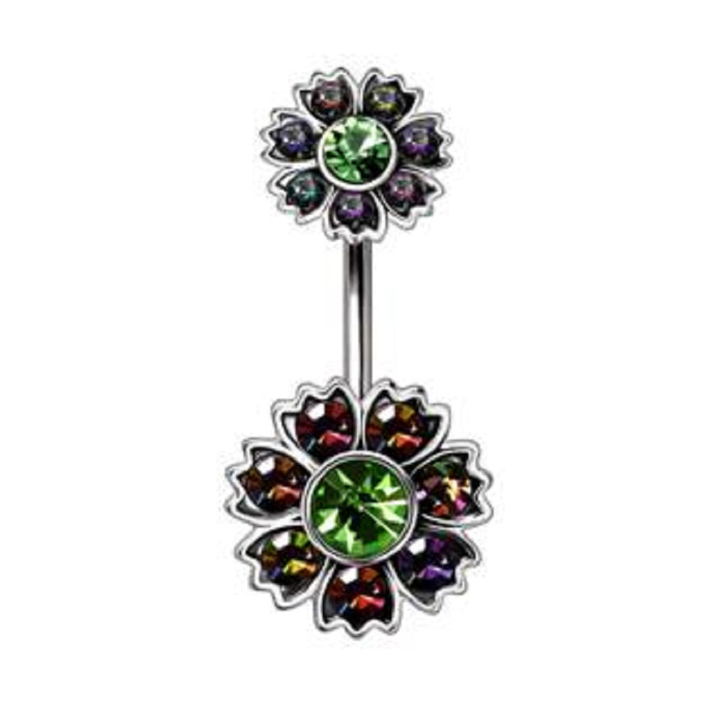 - • Multiple dark iridescent CZ surrounding a Green CZ on each flower