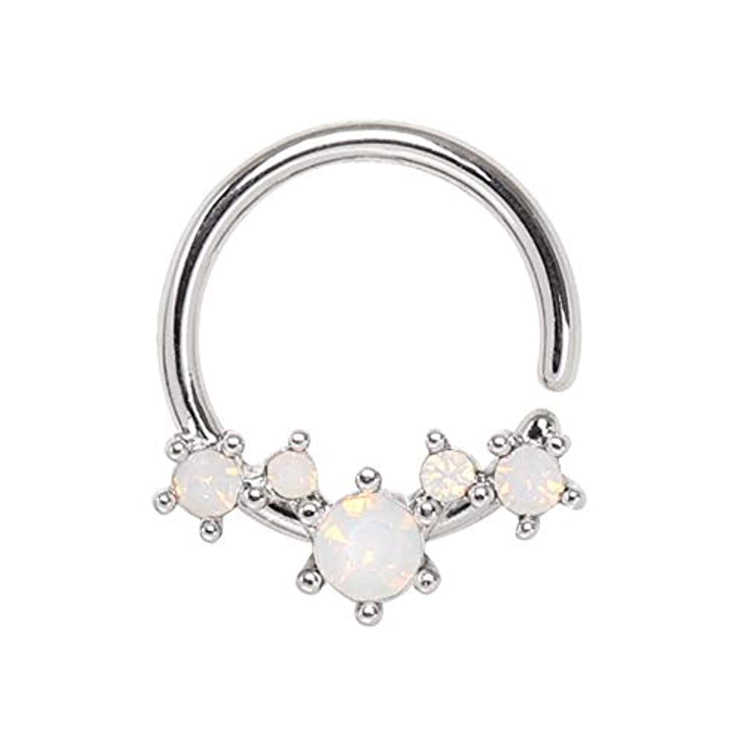 - Five round White Synthetic Opal stones captured in prong setting. Versatile jewelry can be worn as Captive Bead Ring, Septum Jewelry, & Cartilage Earring. Lightweight and comfortable to wear.