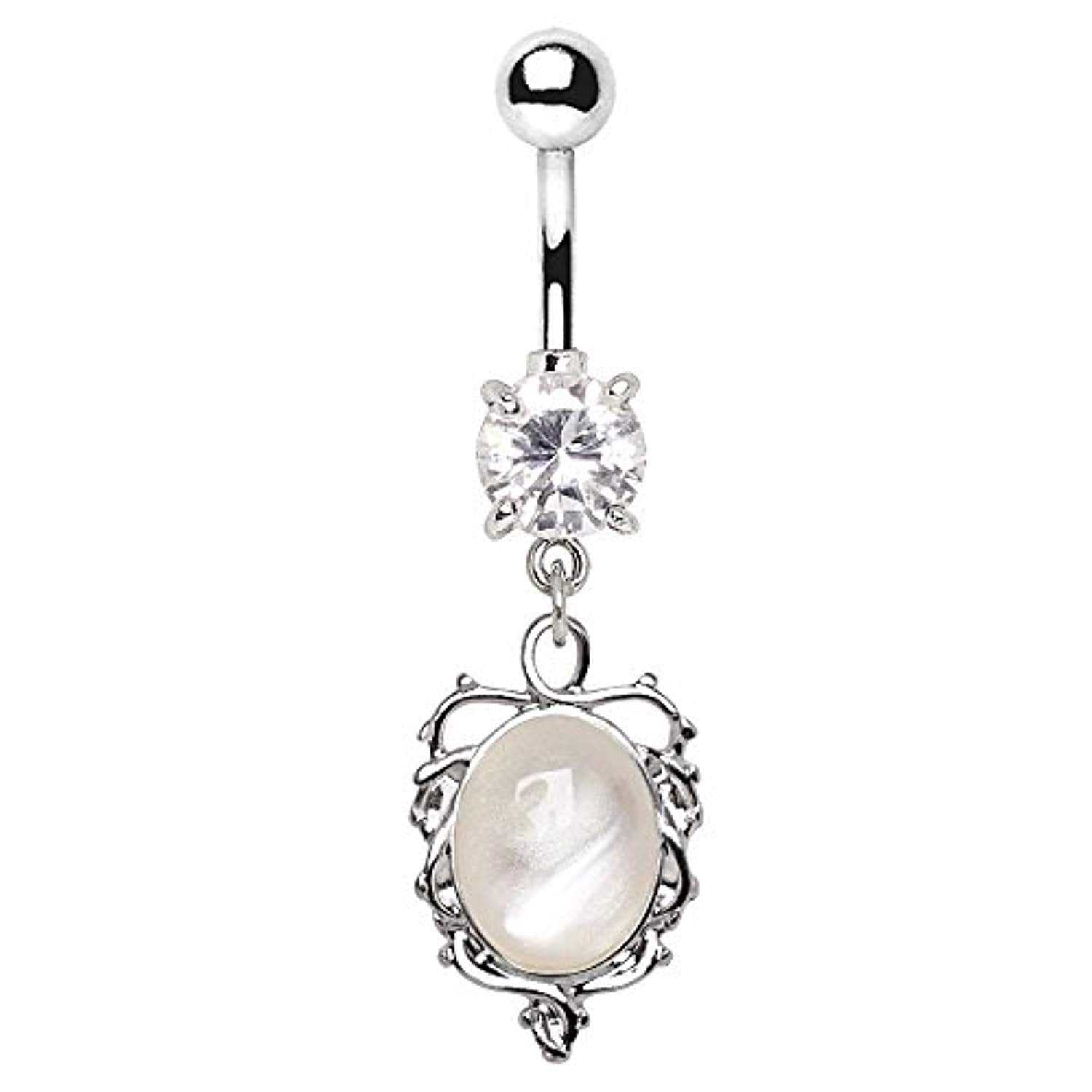 - Type: Belly Ring Dangle, Style: White Cat's Eye