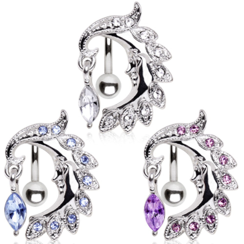 316L Surgical Steel Top Down Navel Ring with Moon and Marquis Dangle. Available in 3 Colors. Lightweight and comfortable to wear. Material : 316L Stainless Steel Thickness: 14g, Length: 10mm Free Shipping!